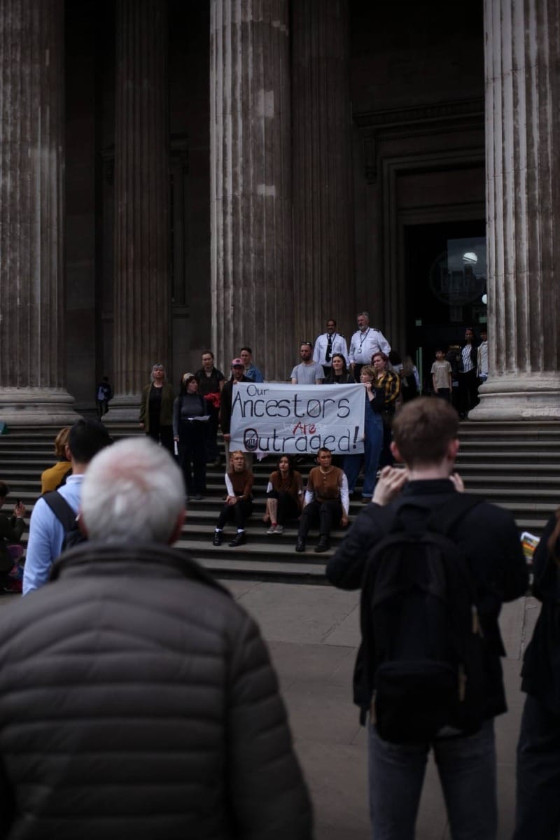 A spokesperson for the British Museum told Hyperallergic: "The British Museum respects other people’s right to express their views and allows peaceful protest onsite at the Museum as long as there is no risk to the Museum’s collection, staff or visitors."