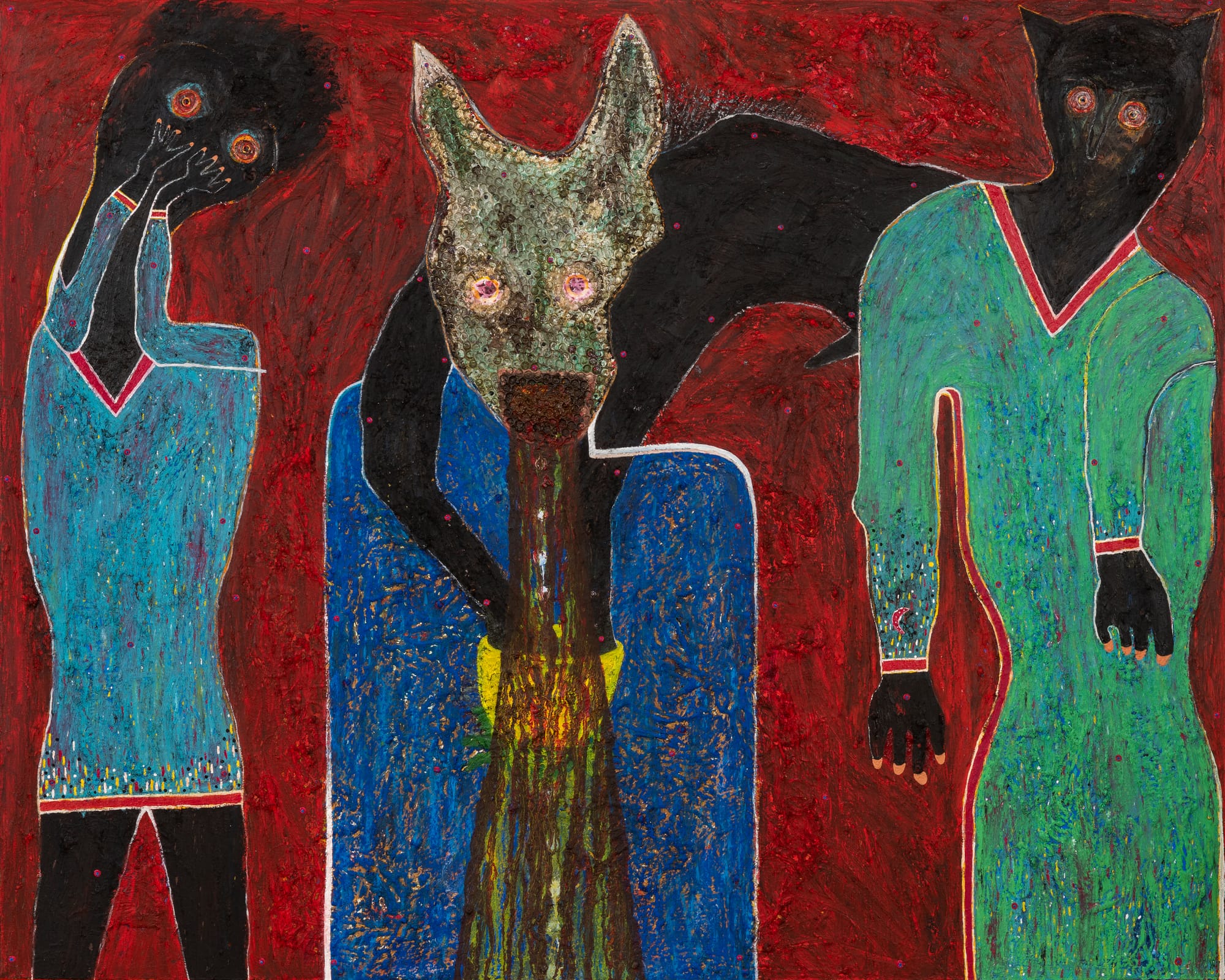 In his Afro-Expressionist paintings and installations, Adjani Okpu-Egbe ruminates on native resistance in Cameroon and the colonial propaganda promoted in mainstream media.