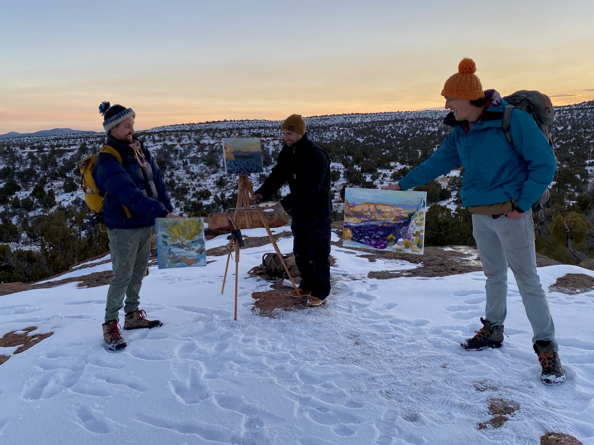 While its attractions transcend intellectualizing, at the end of a long day on a residency, the Adventure Painters convene to discuss process. “We’ll talk about, say, a waterfall — why is a waterfall so hard to paint?” says DeFeo.