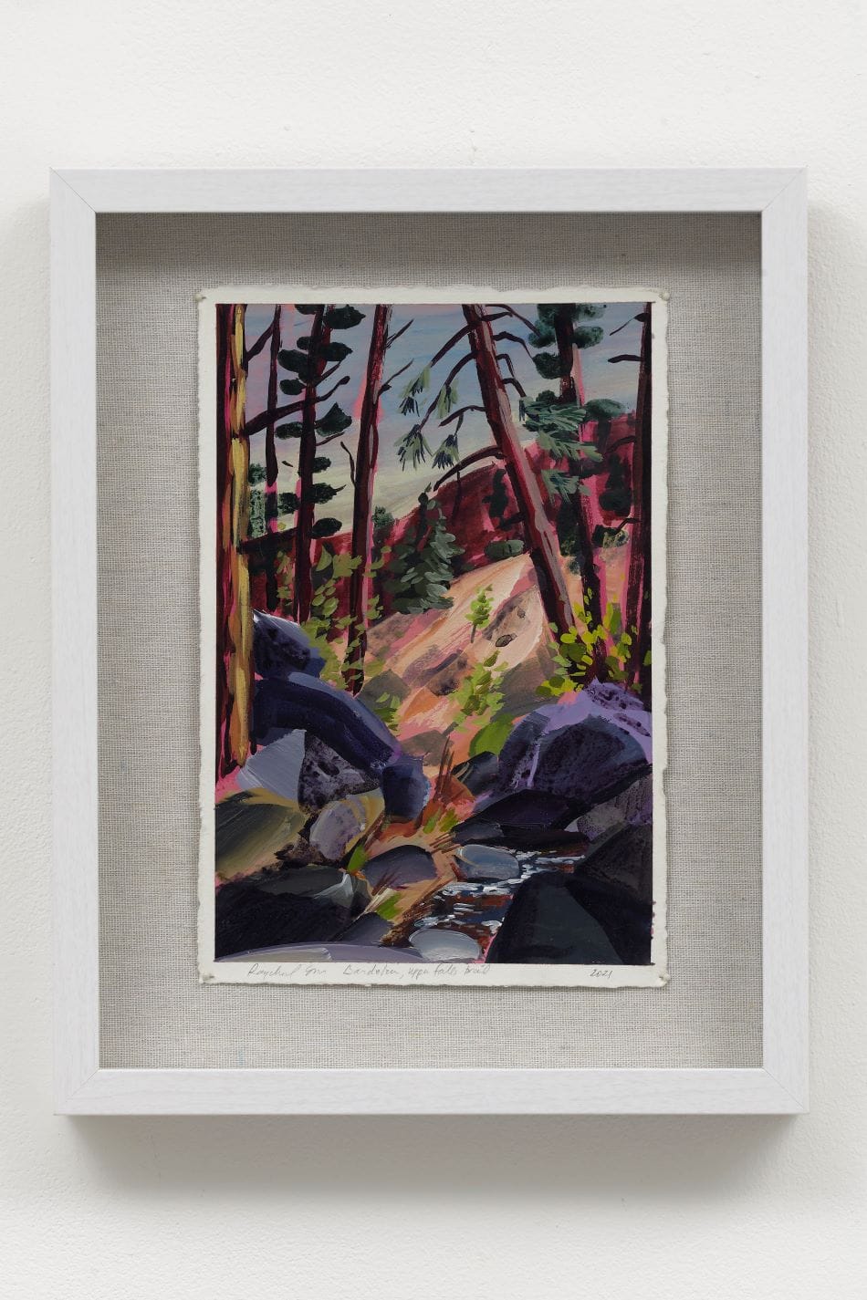 Stine teaches, among other courses, Wilderness Studio at the University of New Mexico, an art class in which students make their own pochade boxes and then go camping for two weeks to experiment with working beyond the confines of the Fine Art Department. Painting outside allows her to distill her outdoor observations into new and sometimes surprising palettes.