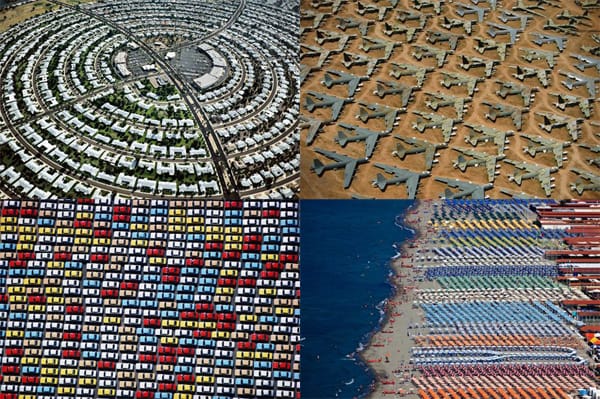 Many of the images seem unreal. Are beaches really that dense? Are traffic jams really that awful? They remind me of the manufactured work of Ross Racine, or photo essays made using Google Earth aerials, whether that be North Korean prisons, odd urban landscapes or assembled objects. As humans, we’ve spent most of our existence looking upward and over, but there’s something, dare I say, New Aesthetic-ish about seeing the world from above.