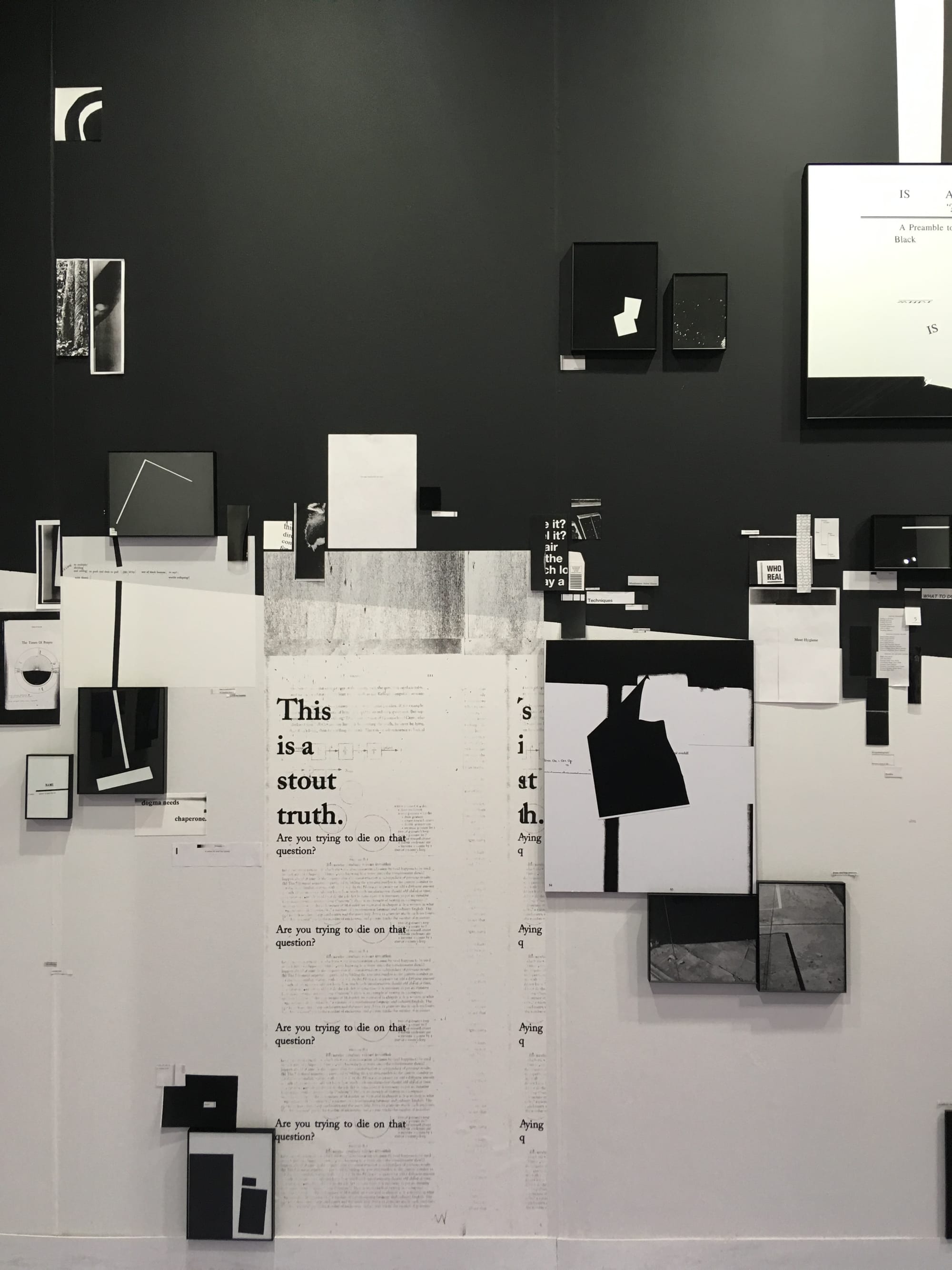 Next in the curated section, Troy Michie (Company Gallery) creates works using photographs with people’s bodies and faces cut out in a symbolic specter of invisibility, and Tomashi Jackson (Tilton Gallery) assembles sculptures that meld Josef Albers’s color theories with the history of racial politics in the US. Both Michie and Jackson, like Shrobe and Morris, use collage as a means of questioning deep-seated societal narratives and pushing for a kind of historical reconstruction.