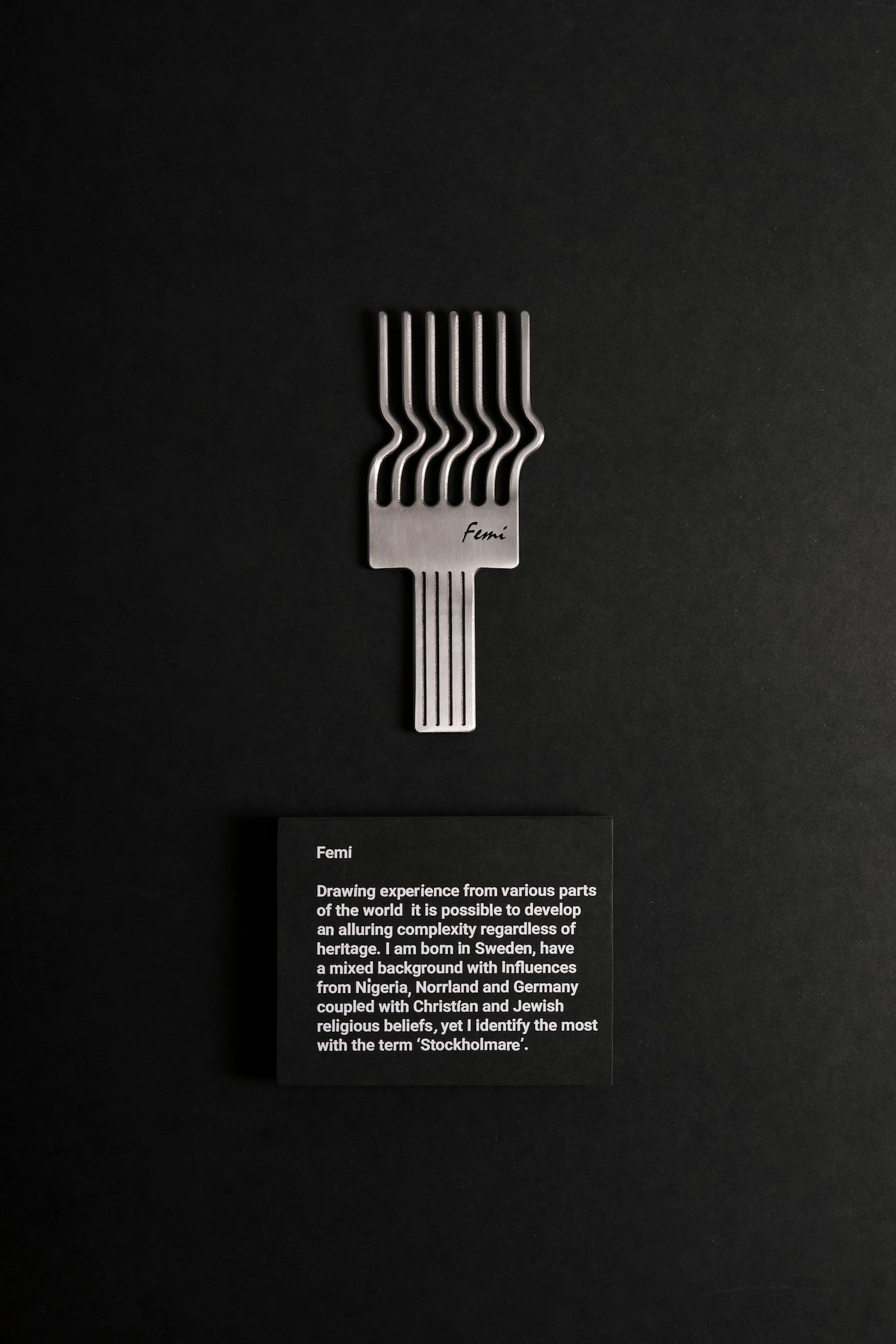 “Behind each comb is a story,” Skinner said. Having Swedish and Caribbean roots, the designer wanted to look at the “in-betweenness” of social constructs. After interviewing other Afro-Swedish individuals about their perspectives on national identity, he set about designing eight unique afro picks. Accordingly, the combs combine story, function, and aesthetic into material form. Skinner used laser cutting, casting, and 3D-printed aluminum to diversify the look of each object. Functional objects created out of a desire to physicalize a call for collective identity, the series, simply titled Afropicks, pulls on the fragile strings of Swedish culture and changing demographics.