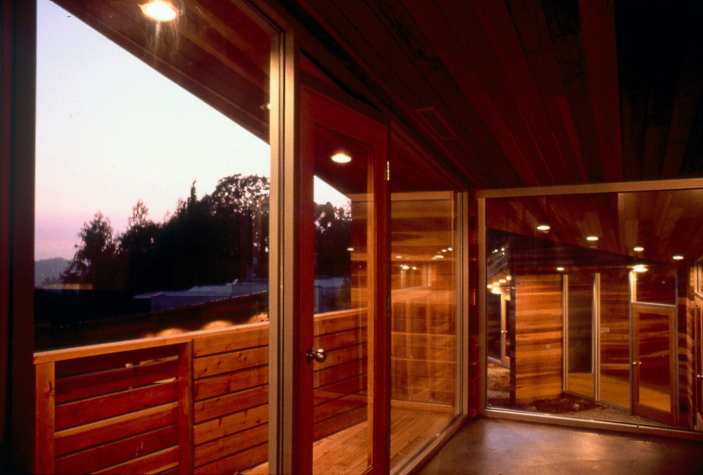 Still, the project does engage with architectural elements and tropes, sliding between continuation and rupture with precedent. Its clean, open aesthetic reflects parallels with the residential modernism of Rudolph Schindler and Frank Lloyd Wright, while its plain, redwood facade links it to other homes nearby. Sea View consists of several linked structures around a central courtyard, responding to the features of the site so that oddly shaped rooms unfold on multiple levels. A staircase doubles as a library and large windows provide light and a connection to the landscape, but disregard the element that gives the street its name.
