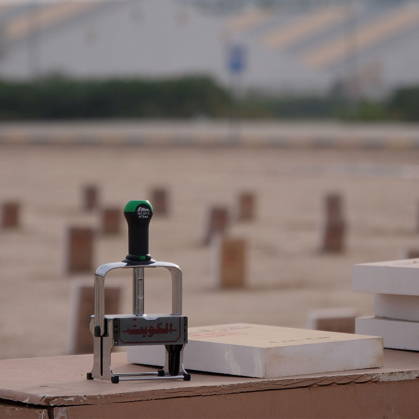 At the front of the cemetery sat a librarian’s desk and stamp, signaling the symbolic idea that the books have been “checked out” of Kuwait’s canon.