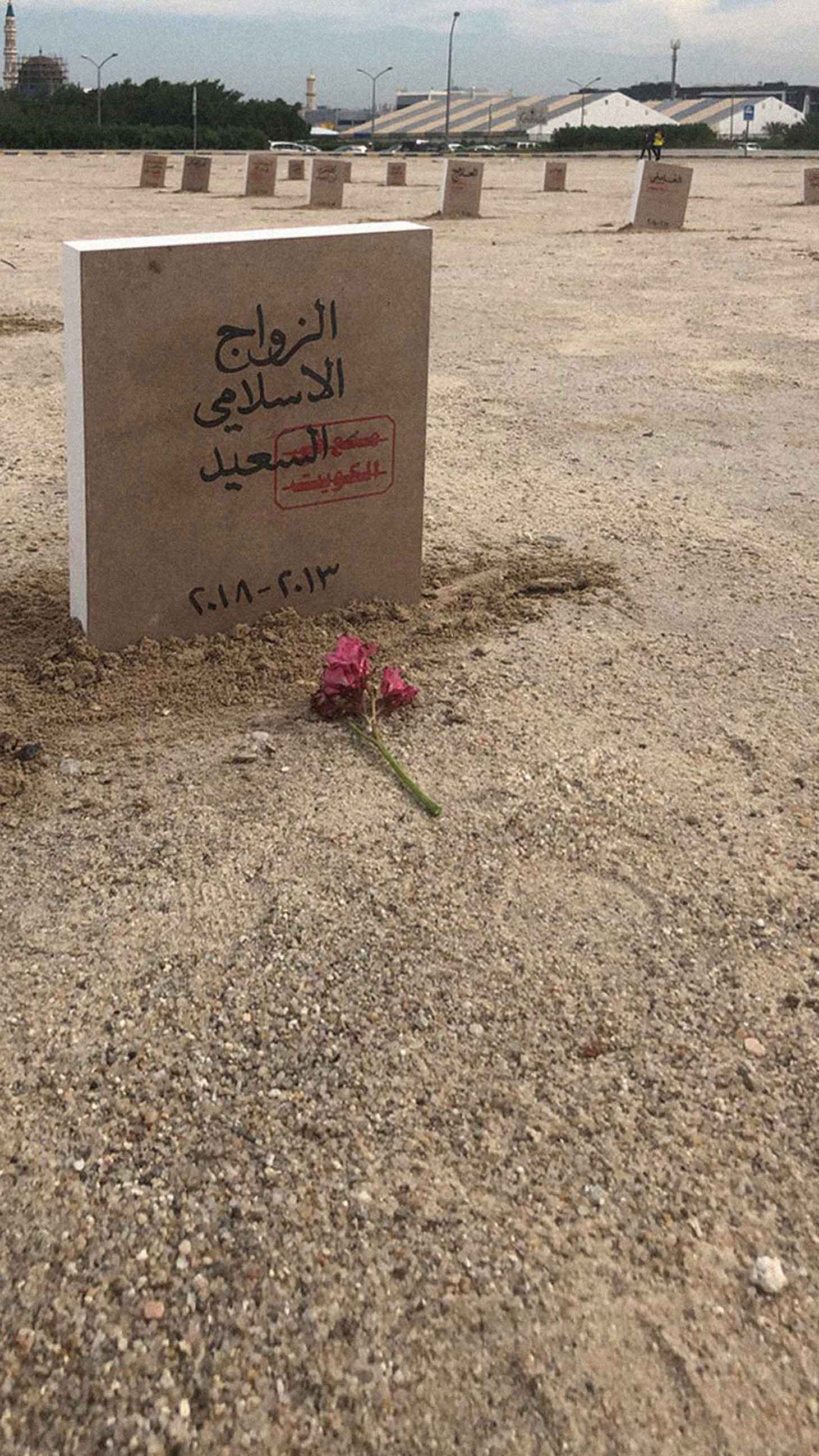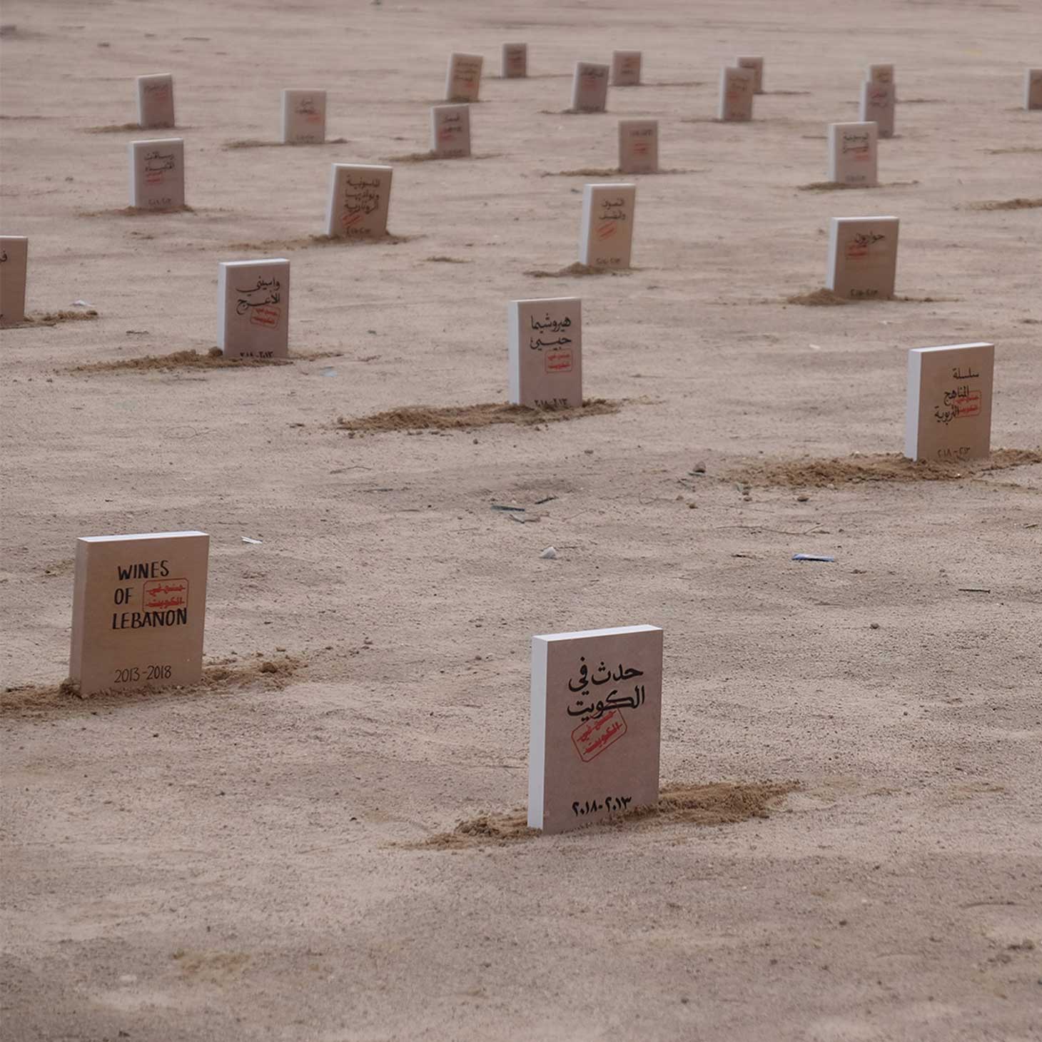 Mohammad Sharaf installed 200 headstones for the censored titles in a plot of land beside Kuwait’s Annual Book Fair.