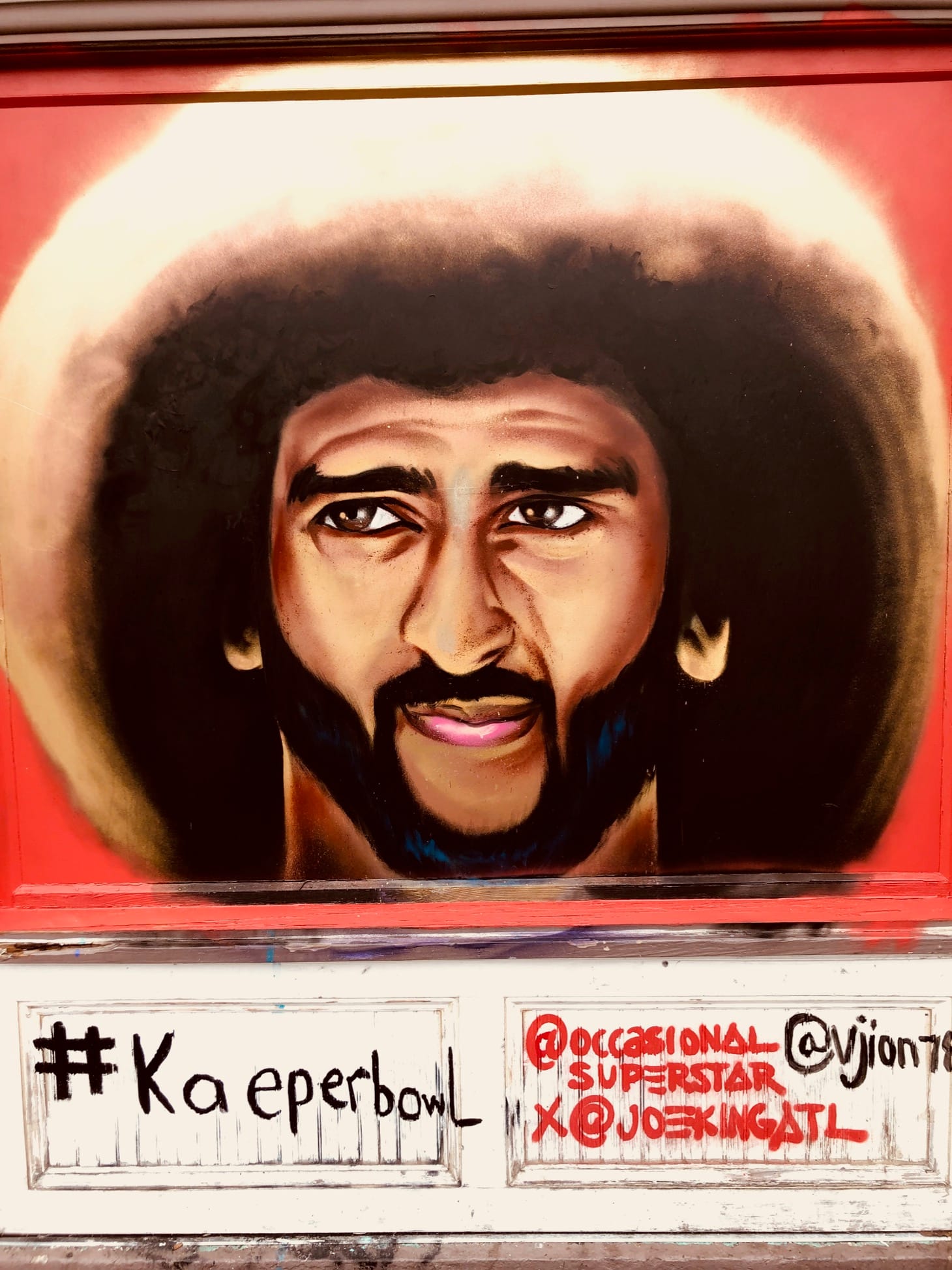 That initial portrait of Colin Kaepernick gained Williams increased notoriety in Atlanta, and it remained up well after the media had moved on from the controversy around player protests during the national anthem … that is, until NFL bigwigs came to town for the Super Bowl (which took place on Sunday, February 3 in Atlanta).