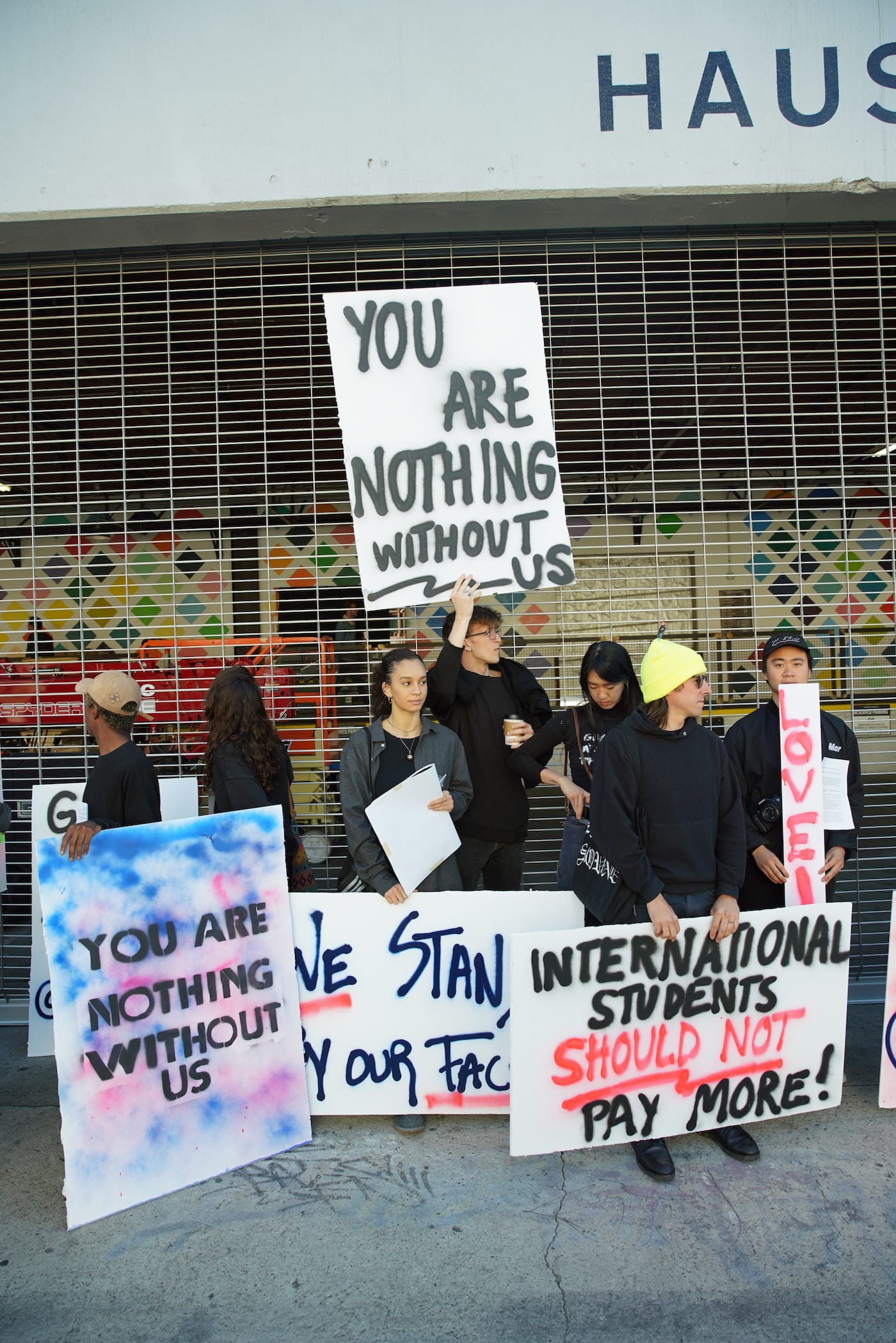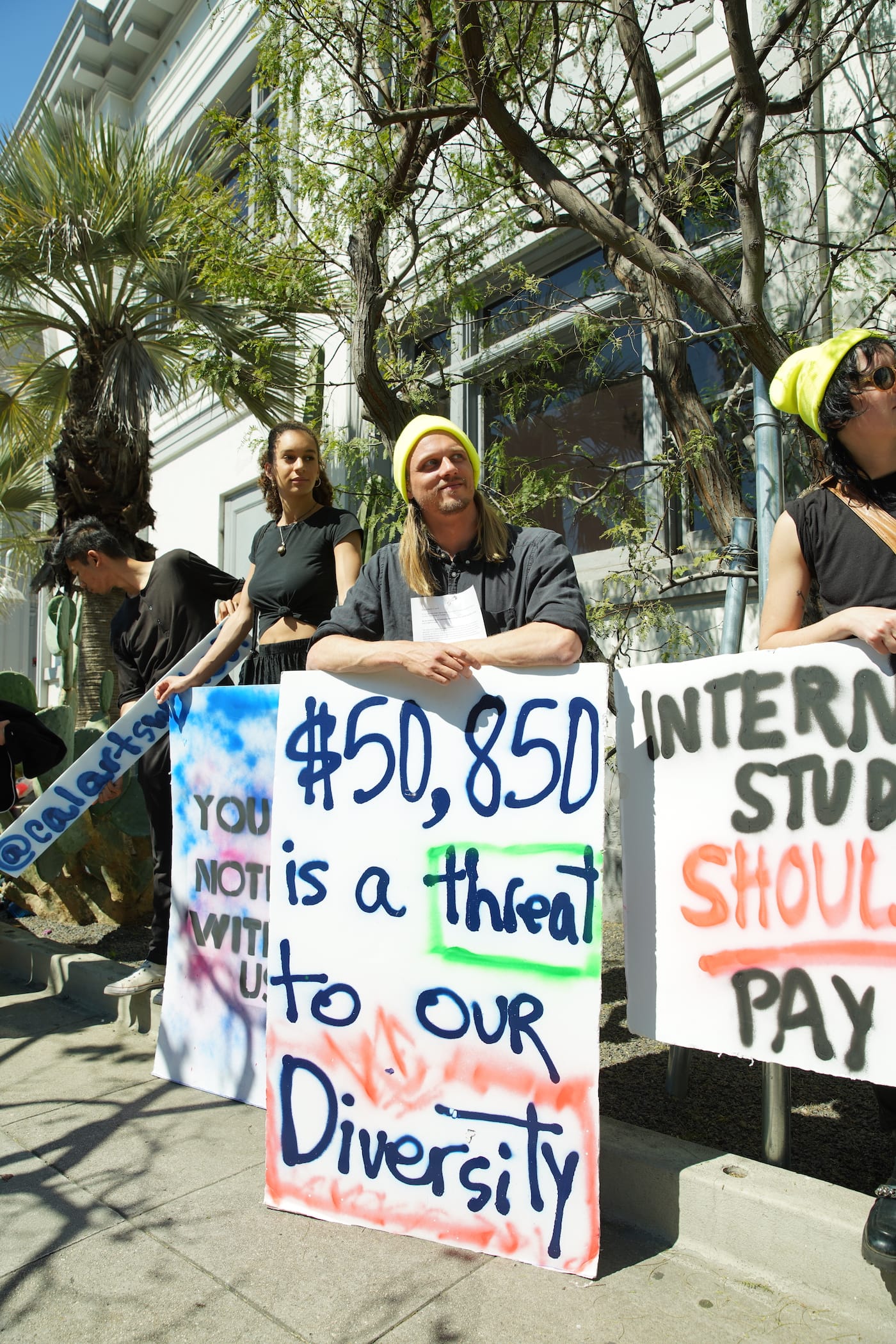 On Tuesday morning, CalArts students organized outside of Hauser & Wirth in Los Angeles, where the Board of Trustees voted on the tuition for the next academic year, which will total $50,850.