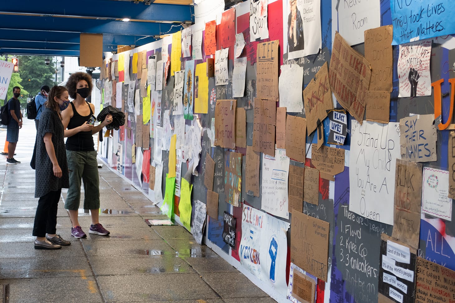 Last week, a group of curators from the Smithsonian Institute visited the site and agreed to preserve at least some of the memorabilia at the Smithsonian National Museum of African American History and Culture. Activists believe the museum acquired a significant portion of what was removed from the fence. Meanwhile, many more pieces are stored away by the activists who currently ran a free food stand across the street, next to the St. John’s Episcopal Church. Eric and Ryan, the two activists who were in charge of the stand at the time, said they did everything they could to salvage the artwork and the signage, which is now on display as a makeshift public art exhibtion.