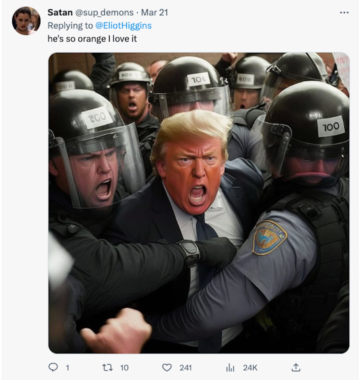 “Making pictures of Trump getting arrested while waiting for Trump’s arrest,” Higgins wrote in a tweet on Monday. He later clarified that he created the images using the AI platform Midjourney. The post went viral, with 4.9 million views as of this writing.