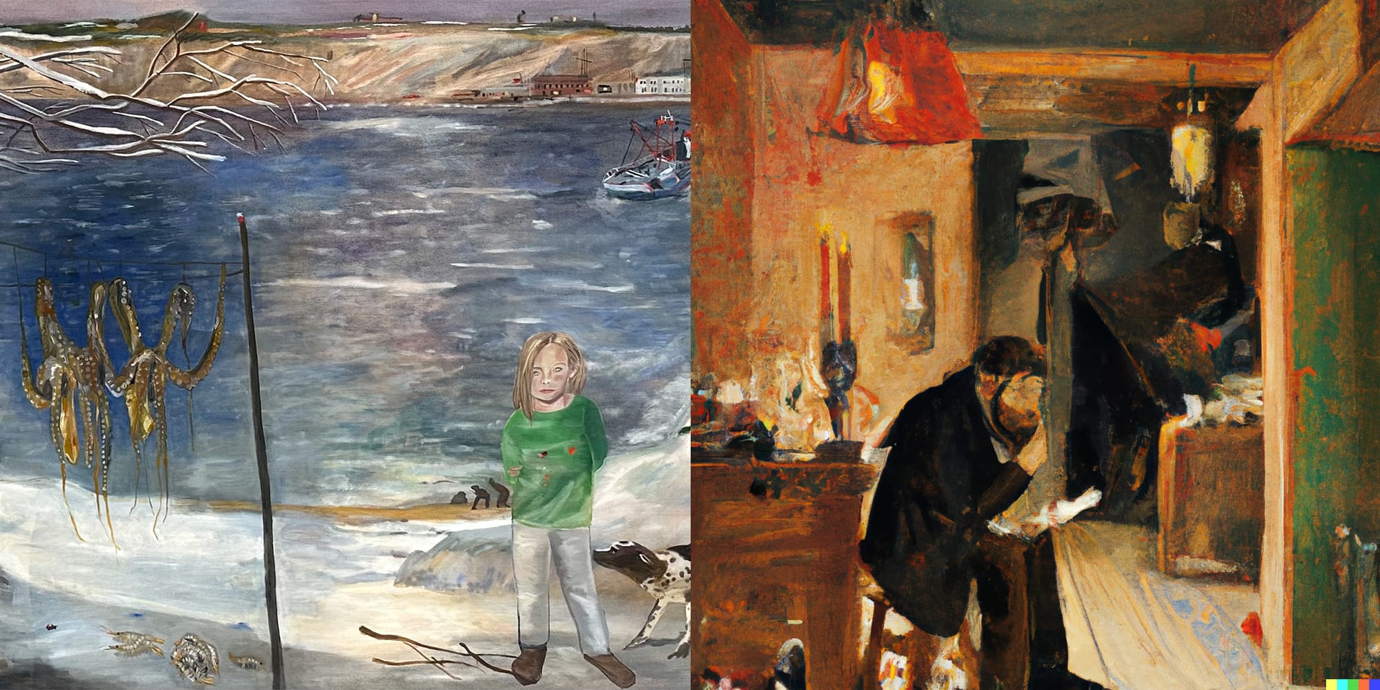 So, without further delay, here are the results. The human-made works on are on the left, and DALL-E's reimagined versions on the right, with some commentary. Is the future already here?