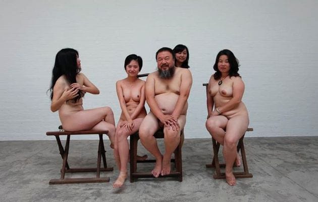 The pornography charge comes from a seemingly harmless photograph, titled “One Tiger, Eight Breasts” (2011) [pictured above], that depicts the nude artist sitting among four nude women. Hyperallergic covered the controversy late last year when it appeared that the Chinese authorities may make the image an issue for the artist. What was unexpected about the incident was the response by the artist’s supporters, who posted over a hundred photos of themselves nude on Sina Weibo and Twitter as an act of solitary.