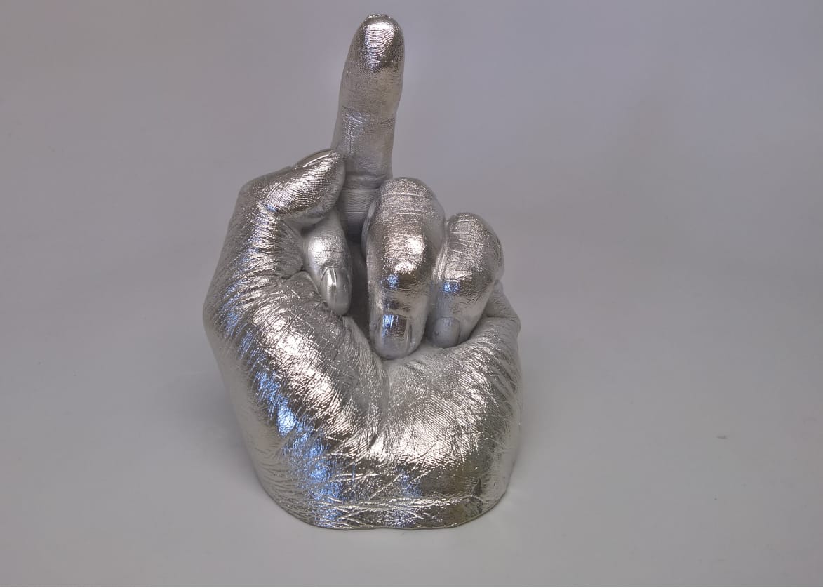 Artist’s Hand, a 5″ x 4″ x 4″ rhodium-plated sculpture of Ai Weiwei’s hand recalls his seminal Study of Perspective series, in which the artist photographed his hand “flipping off” significant landmarks and world monuments in a rejection of authority and political oppression, and an affirmation of individual expression. It is available for $675 (quantity 1,000).
