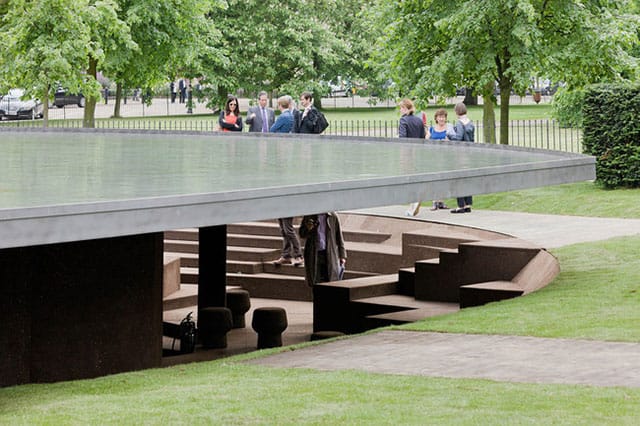 Tomorrow, the new Serpentine Pavilion officially opens in London’s Kensington Gardens and judging by the photos on Bustler and elsewhere this year’s creation by architects Herzog & de Meuron and artist Ai Weiwei may be one of the most beautiful yet. Partially submerged into the site, their pavilion, the 12th in the popular series, appears to be a zen cove of reflection.