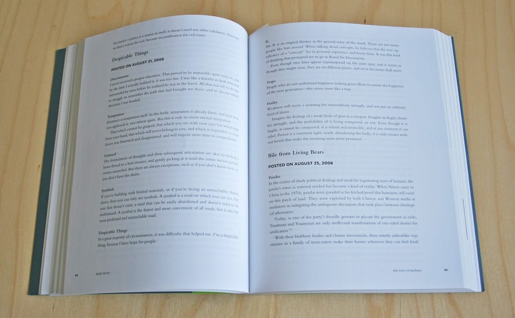 Quite a heady first paragraph. It’s important to keep in mind the problems that come with translating Chinese: there’s a fine line to walk between keeping the text true to its meaning and making it smoothly readable in English prose. Ambrozy’s translations (along with spot work by other translators including LEAP Magazine‘s Phil Tinari) tend toward preserving the literal meaning, the style and tone, rather than making Ai’s writing easily digestible. That angle is a good choice for a book should come to be viewed as an historical document and a source text, but fair warning for anyone looking for an entertaining read — many entries in Ai Weiweis Blog tend toward what an average English reader would describe as academic.