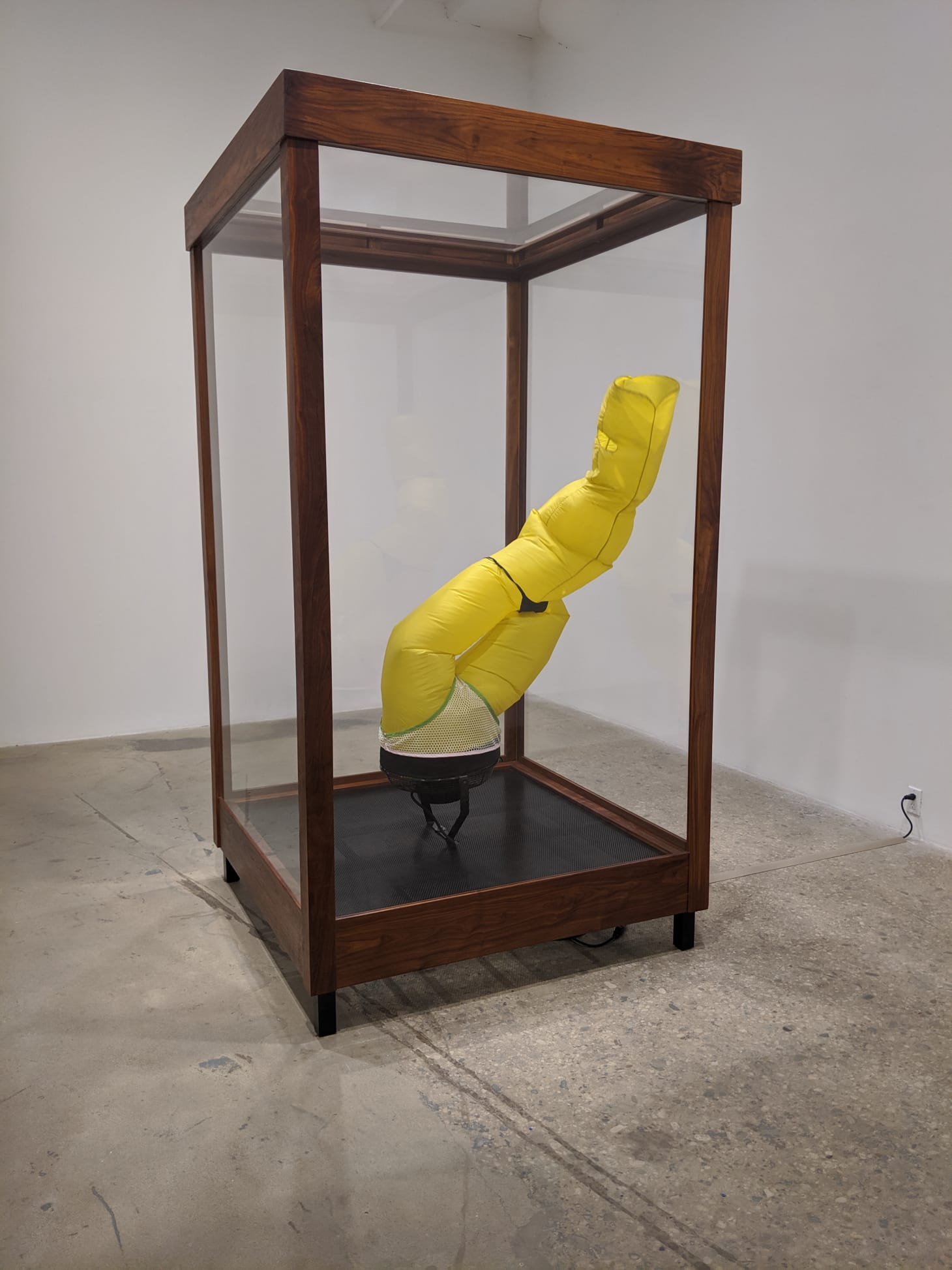 The inclusion of a vitrine, though beautiful, remained unexplained, as did many other elements, despite the lengthy press release.The 1,775-word text chronicles each “Bather” and offer notes about their choreographed movements and explanations of some of the titles, bookended by an underdeveloped statement of how the exhibition intends to engage with present and historical culture. It bears noting that most gallery press releases are around 200–500 words, and many galleries make the mistake of releasing overly-abstract, jargon-heavy texts probably hoping to prove that they and their artists have ivy-league degrees, can quote German philosophers, speak French, etc. As a result, many press releases are utterly useless unless the reader also is an elite member of the art world. For Chan and Greene Naftali to present the “Bathers” in such an inaccessible way is a tragedy. By combining the joyous familiarity of sky dancers with precise engineering, the “Bathers” have the potential to connect with both art world insiders and new audiences, but that entry point is made impenetrable. This isn’t to say that art should never be research-based or marinated in multiple, converging referents. Art should, however, be generous and should not ostracize the viewer or require them to have an advanced humanities degree to “get it.”