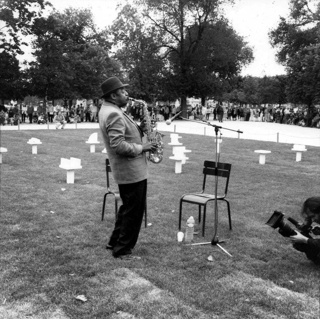 In 1980, Kirili moved with his wife, the photographer Ariane Lopez-Huici, from Greene Street in Soho to a loft in Tribeca and his devotion to improvisation and spontaneity took a new turn — rather, it took a fresh impetus from a long-felt passion. Kirili remembers being awakened as a child by unexpected music. It was the sound of Sidney Bechet, a founding father of jazz, playing in the kitchen of his family’s apartment in Paris. This was the beginning of a lifetime of listening to jazz. During the early 1970s, Kirili attended concerts by proponents of free jazz at the Fondation Maeght, a center for the arts in the hills above Nice, in southern France. In the following decade, he launched a program of free jazz concerts in his and Lopez-Huici’s loft. Since then, there have been seven or eight music events every year, featuring such musicians as Cecil Taylor, Billy Bang, and Roscoe Mitchell.