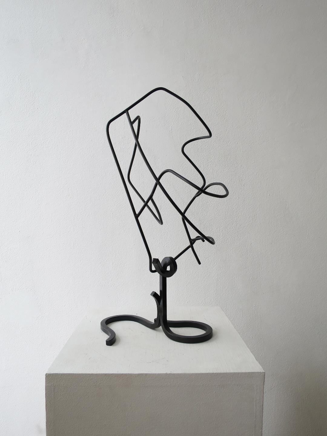 Four years ago, the sinuous gestures of the Iron Calligraphy series evolved into figures — or, more accurately, freestanding configurations of lines, curved and sometimes angled to evoke the human presence. The means are identical in each of these works, yet the results are thoroughly individual. With these sculptures Kirili does, in his distinctive way, what sculptors have done for millennia: he confronts us with presences analogous to our own. Throughout his career he has evoked the body, male and female, in an era when sculpture has often sidestepped the human form to focus on geometric shapes or objects found readymade in everyday life.