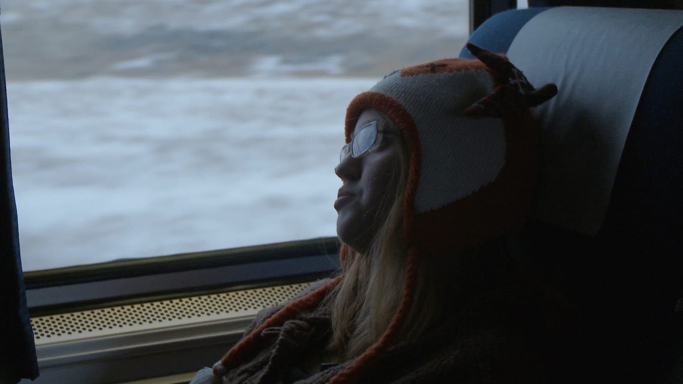 A train’s horn moans over a black screen, accompanied by the rhythmic clanking of the cars passing along tracks. The blackness yields to footage of a landscape accompanied by a male voice drawling, “I lived in Mississippi for 12 years.” However, the snow-dusted pine trees on view are far from the warmth most would associate with the southern state. The voice belongs to a young male regaling a young woman about his decision to abruptly leave his job and move to Washington state. He is between places, and the viewer joins him in this middle space.