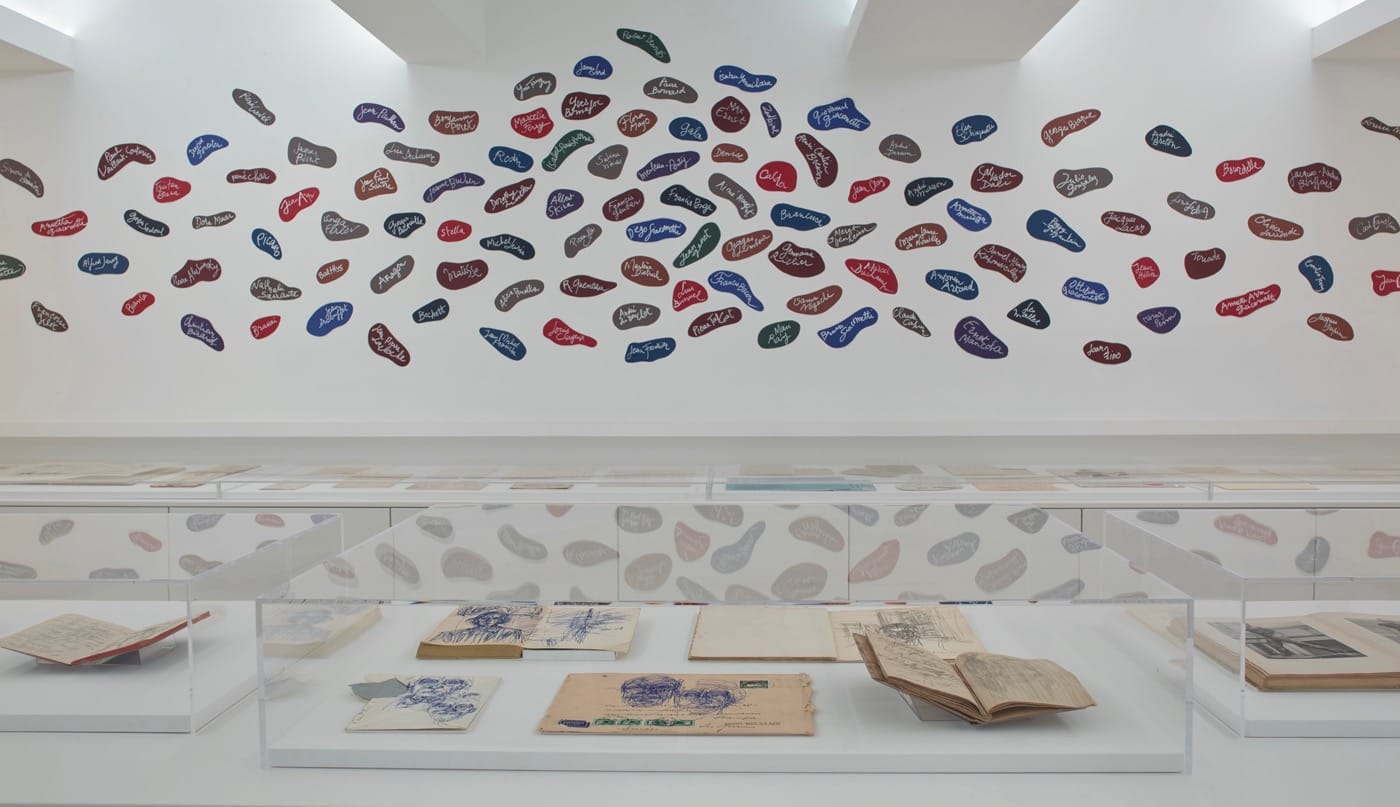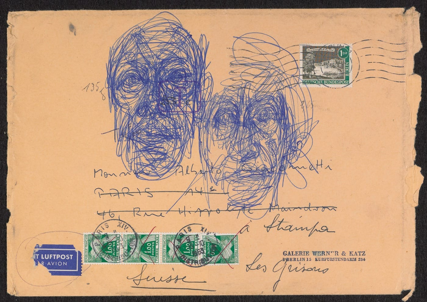 The reassembled 20-meters-square Hippolyte-Maindron studio is the first thing encountered, and it is compelling since it includes the very last clay sculptures Giacometti was working on before he died in 1966. But soon Annette Messager’s sharp feminist slant supersedes traditional melancholic, existential, and phenomenological readings of Giacometti’s work, as recently depicted in the fine film Final Portrait based on American art writer James Lord’s book. Accepting cart blanche, Messager pulled plenteous discoveries from the archive, presenting little known Giacometti sculptures, drawings, notebooks, and personal documents next to her own. The whole is organized thematically by room: the room of encounters, the room of legends, the nose-to-nose room, the room of disorders, and the room of Annettes.