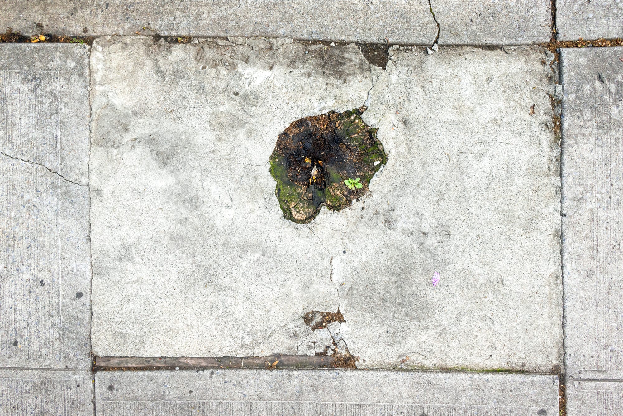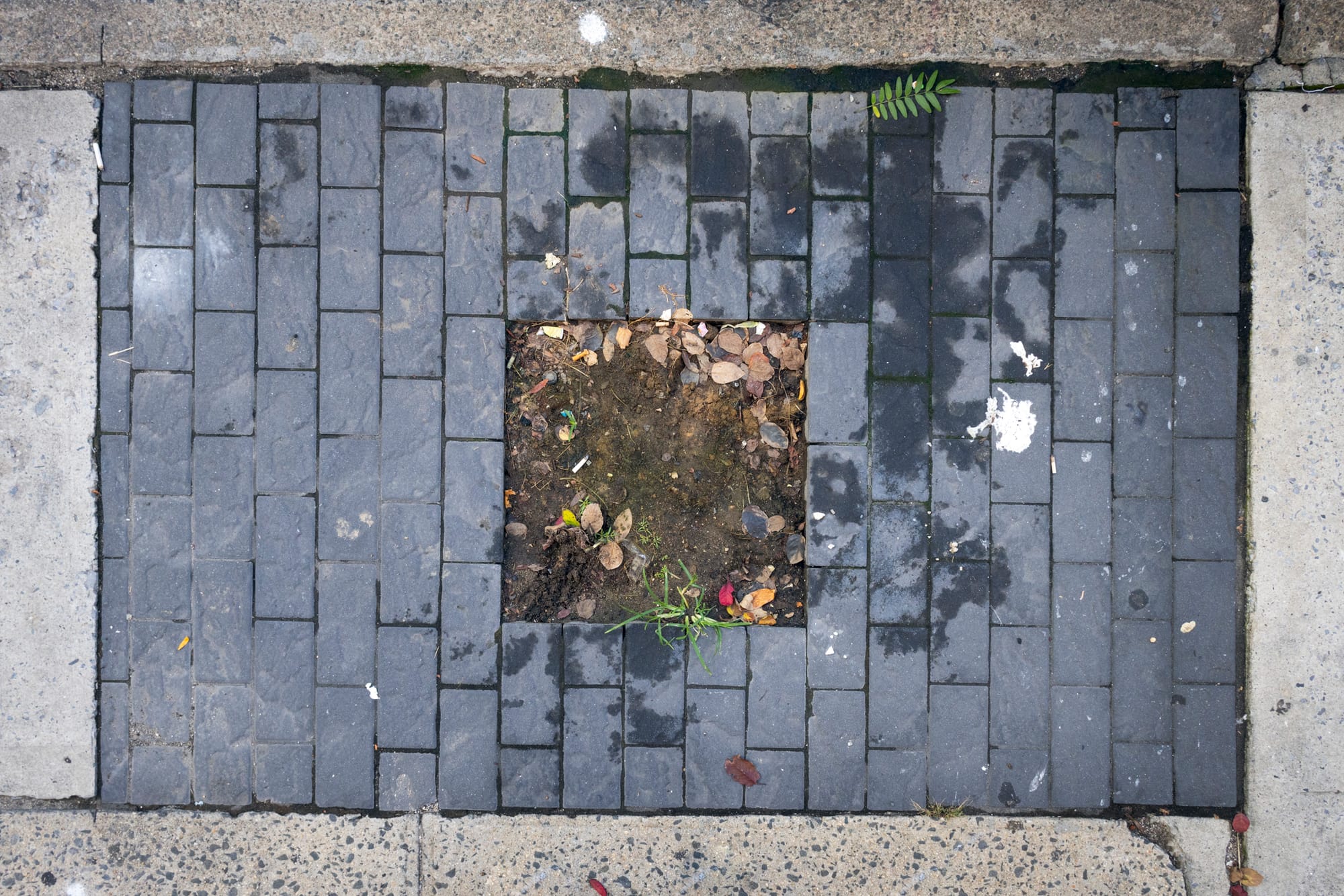 The average pedestrian on a city stroll is more likely to notice the tall, flowering trees they see above them than the remnants of trunks no longer there. Photographer Alexa Hoyer is unique: It was the derelict, abandoned sidewalk tree beds that she couldn’t ignore when she moved to Ridgewood, Queens. Fallow Frames is her project documenting these accidentally artistic tableaux found in her neighborhood. From March 9 through March 31, Manhattan’s PS122 Gallery is exhibiting the body of digital photographs alongside a group show curated by Hoyer that uses the tree bed as a conceptual and aesthetic starting point.