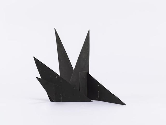 In 1945, his close friend Marcel Duchamp proposed a presentation of Calder’s small-scale works, many created from scraps rendered in the making of other works. ‘Let’s mail these little objects to [Louis] Carré in Paris, and have a show,’ Duchamp suggested. Calder liked the idea and, intrigued by limitations on parcel size imposed by the United States Postal Service, began to conceive of larger, collapsible sculptures that could be easily transported via the international airmail system.