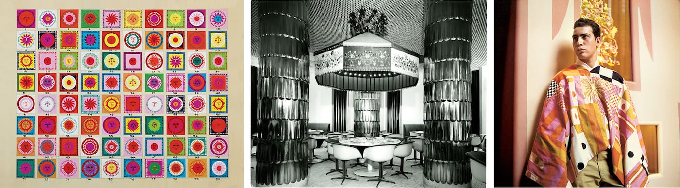 As the Vitra exhibition points out, Girard really never stopped working, and compelling ideas never ceased to flow from his sketchbooks and material experiments. Among his wide array of other projects: a color-driven corporate-identity scheme for the now-defunct Braniff International Airways; the interiors of The Compound, a restaurant in Santa Fe; the complete, color-based redesign of the main street of Columbus, Indiana; a collaboration with Saarinen on a house in Columbus for J. Irwin and Xenia Miller, which became known for such details as its sunken, sofa-lined “conversation pit”; and his involvement in numerous design-themed museum exhibitions.