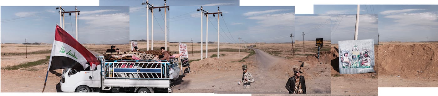 “You think of Mosul and you think of a dangerous warzone, when actually 90 percent of it is open green fields, beautiful landscapes, dogs playing, kids out — like a normal highway that you would find anywhere,” she says. “It’s a huge expanse and because it’s so big it becomes really redundant and really monotonous. Which is part of what I love about it.”