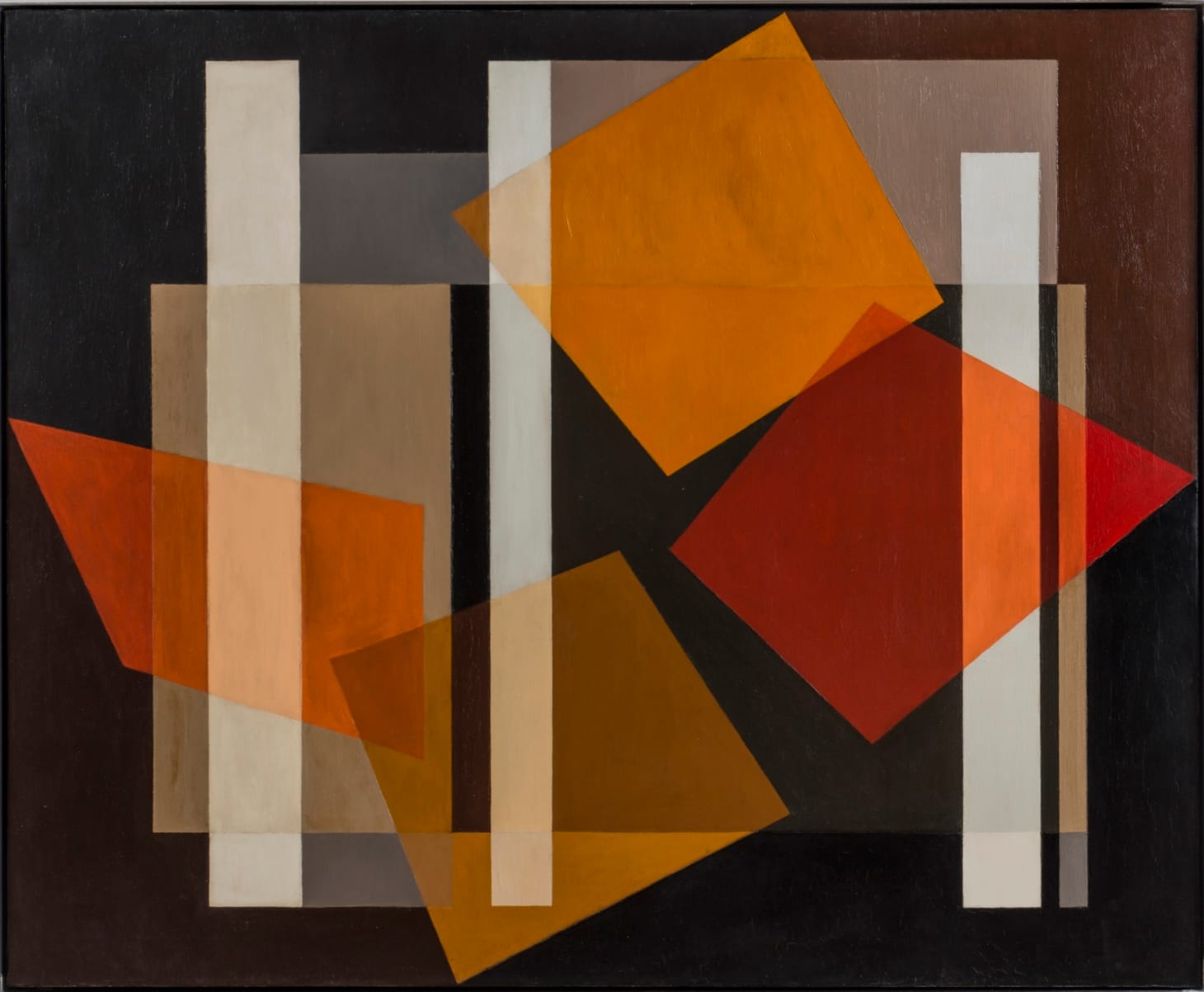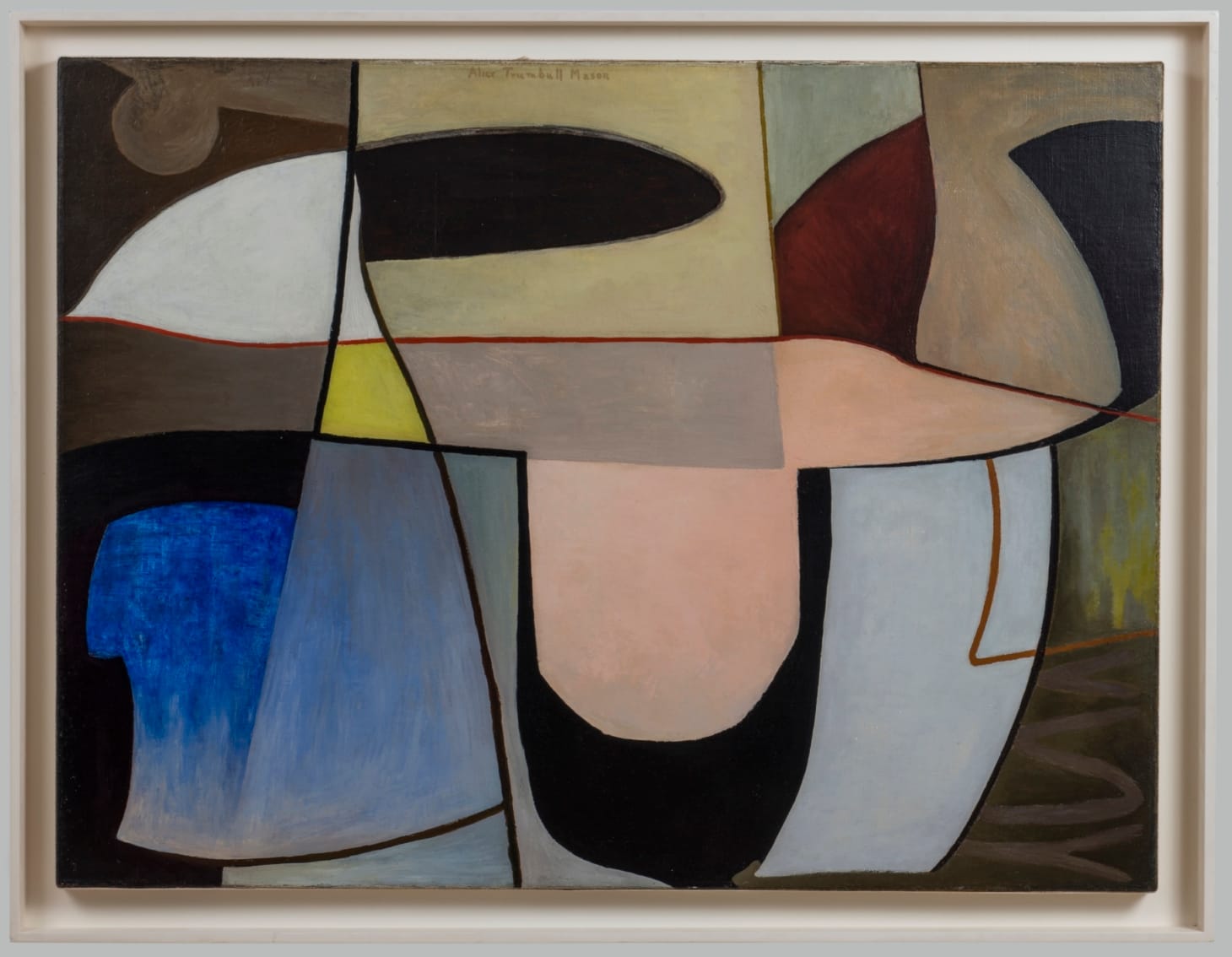 Mason was already working in abstraction by the late 1920s, but she began her career during the heyday of social realism and regionalism in the 1930s. Despite the tides, she stuck with abstraction, developing her own formal, architectural style and stuck with it when Abstract Expressionism took over New York after World War II. From her earlier more biomorphic style to her later, meticulously geometric work — so thoroughly balanced that she signed canvases on two sides so they could be hung either horizontally or vertically — Mason described her work as “building and not destroying.” If such cool rigor seemed out of gestural fashion then, it pointed toward the advent of Minimalism, and beyond.