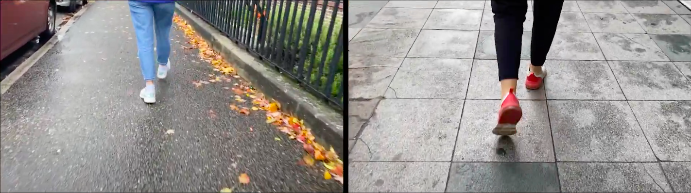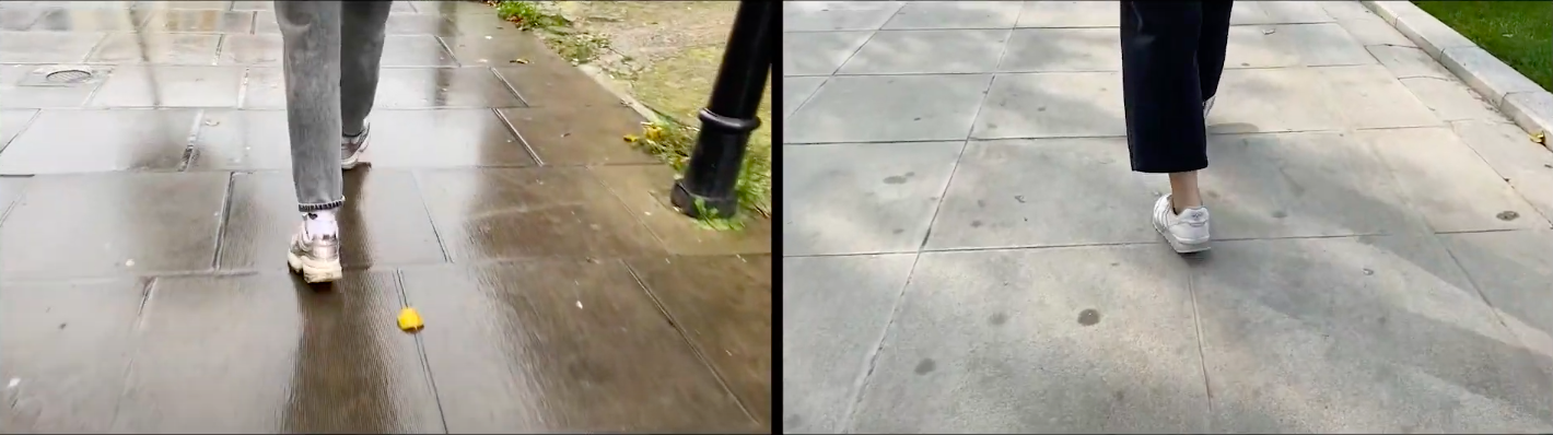 Footage of Oleva’s side of the walks was primarily taken by Timothy Maxymenko, her boyfriend, while a Performistanbul team member filmed the participants in Istanbul. Short video documentations on Oleva’s project website, “Walking Home,” follow the two sets of feet and legs walking side by side on a split screen, with snippets of the recorded conversation. The artist has also compiled the footage into her first film, which will screen online in February and March.