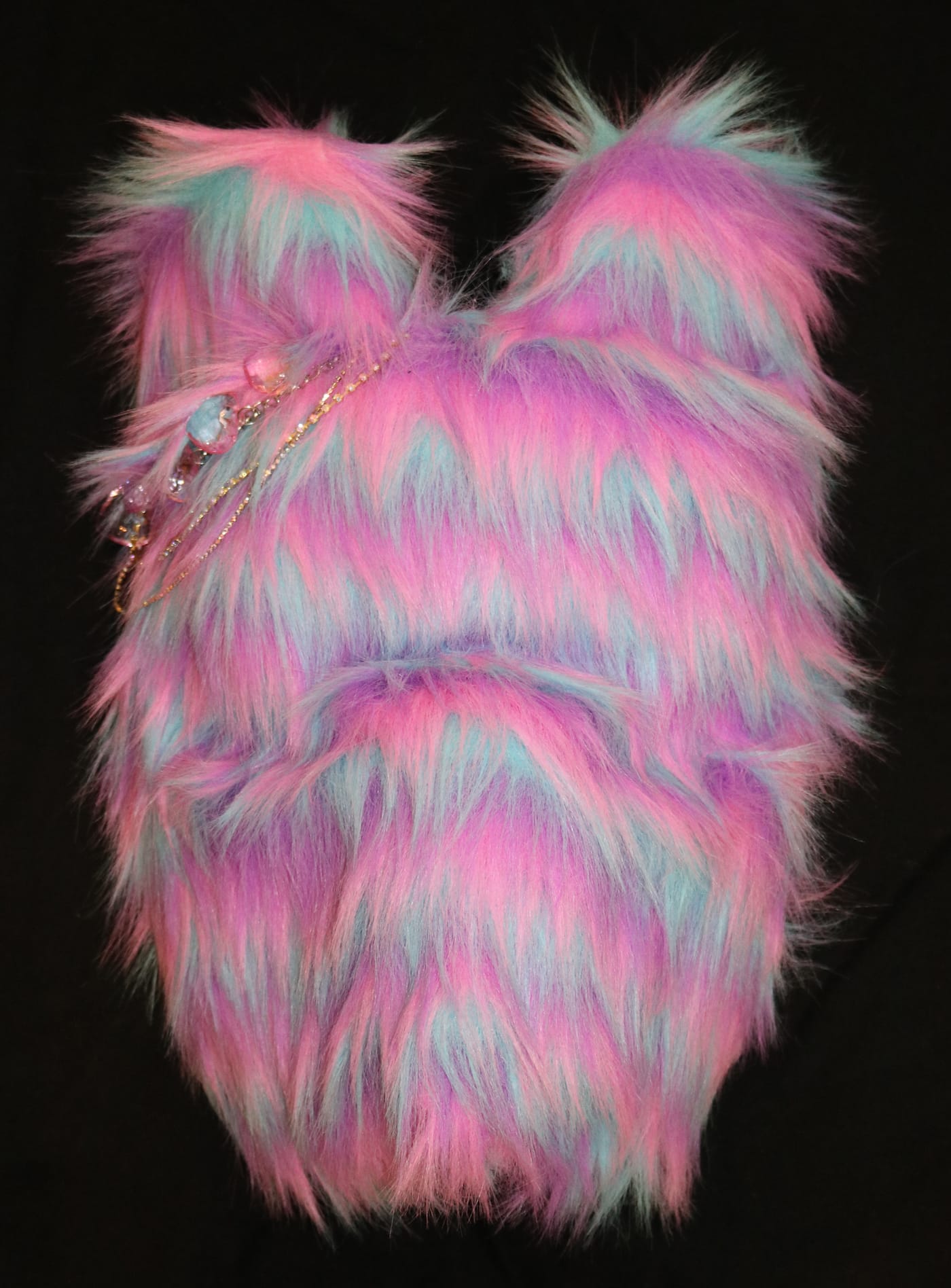 While I found few answers to my questions, a number of Marks’s textiles offered more tangible responses to the weight of a culture struggling to survive the present and more hopeful visions of what it means for that culture to persist. “Chemically Tanned” (2017) hardens her clan’s traditional body-length, animal-skin dress, creating a shell-like sculpture molded around the female body’s contours. Painted in varying skin tones, with legs and arms splayed as if positioned beneath a microscope, the garment exposes a wrought emotional state through the tension of the fabric’s folds, demanding onlookers to simultaneously look and look away. More optimistically, an electric-blue, holographic version of traditional dance regalia, Zenon (2017) interrupts the quiet gallery space with the sense that traditional garments can take on bold, new lives that integrate present and past with seamless cohesion when both are recognized and invited into the conversation.