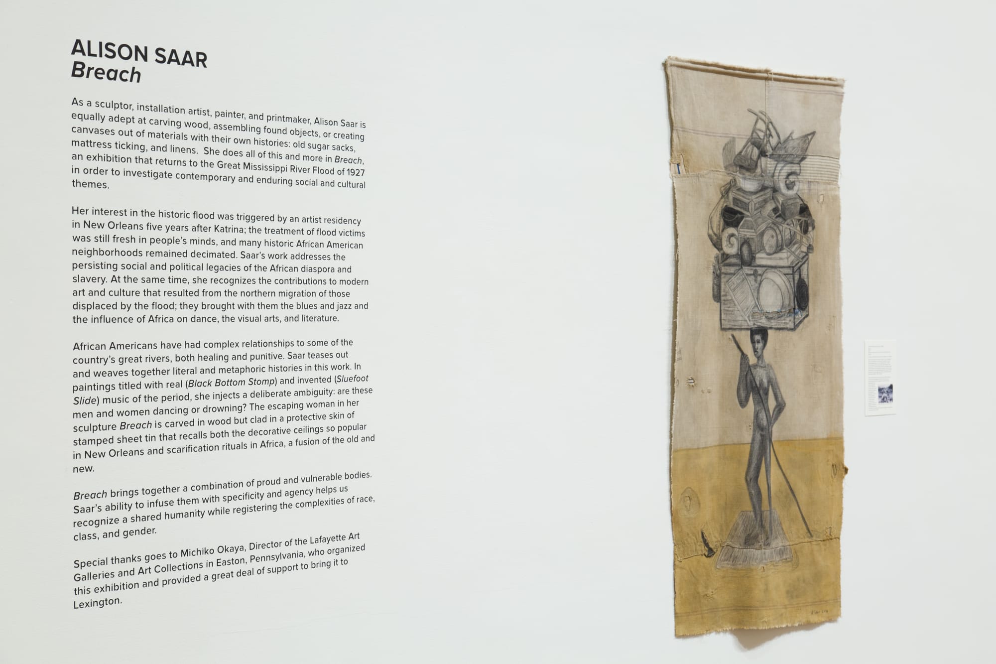 Alison Saar: Breach continues at the University of Kentucky Art Museum (405 Rose Street, Lexington, Kentucky) through December 3.