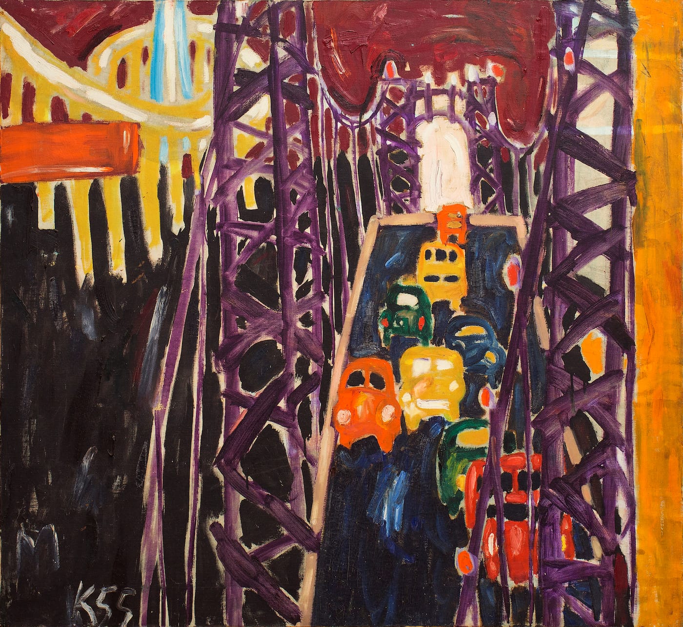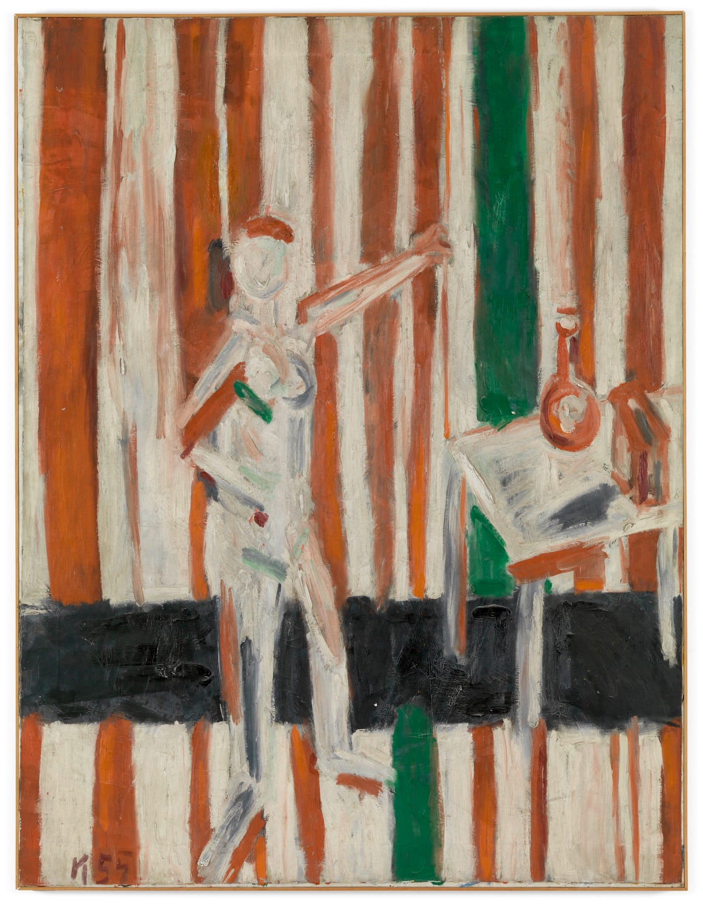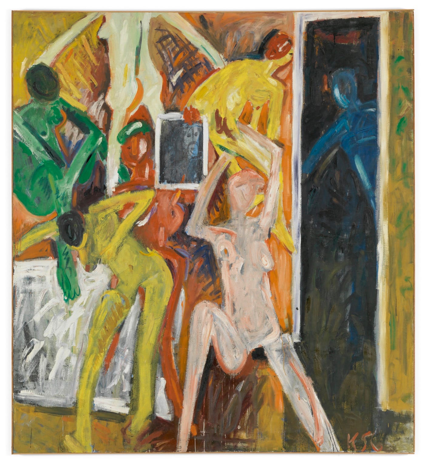The Villa Merkel catalogue, which doubles as the catalogue for the Hauser & Wirth show, underscores the extent to which Kaprow’s art comes out of the School of Paris. In his catalogue essay, Villa Merkel’s director, Andreas Baur, cites the influence of “the grandfathers of European art” on Kaprow’s painting, listing Paul Klee, Georges Braque, Amedeo Modigliani, Claude Monet, and Henri Matisse. I would add Pierre Bonnard, Chaim Soutine, and the artists of Die Brücke.