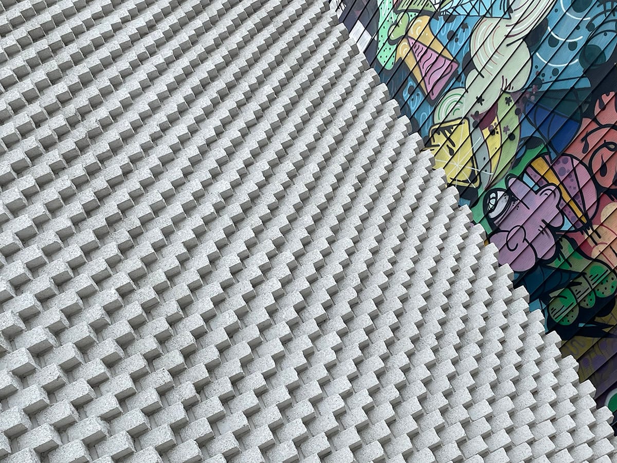 Nestled between brick warehouses and metal depots, a new and surprisingly nondescript art campus has opened in Brooklyn. Made out of several squat, concrete structures, the Amant Foundation’s New York outpost is located on a quiet, industrial street in East Williamsburg. I was expecting Amant to be incongruous at best, a gaudy symbol of gentrification at worst. But Amant looks to be at home alongside its neighboring structures, which house a mishmash of practical and creative enterprises: a meat market, truck repair shop, and restaurant supply store sit comfortably among a craft brewery, photography studio, and two separate recording studios.