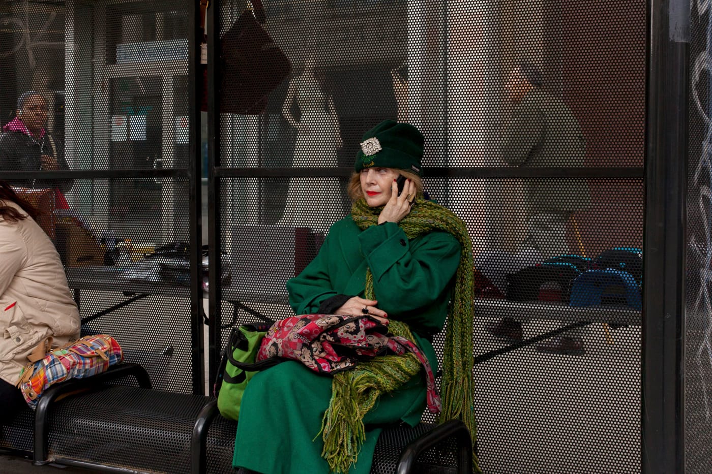 Formally, Kallianiotis’s images are extraordinary, combining qualities from some of the titans of the genre — in particular, he shows an Eggleston-esque sense of timing in his candid images. These are best appreciated in his wide shots of people crossing streets; the lens snaps at the exact moment a pedestrian crosses beneath an evocative bit of signage, or breaks the median of a doorway. While these photos of unaware subjects indicate Kallianiotis’s strong intuition as a photographer, images without people dynamically bring together light, color, and shape, evoking the same aura of magical realism that graces works by Gregory Crewdson — but without the benefit of the latter’s meticulous staging and lighting. The title, America in a Trance, complements the dreamy quality of the imagery.