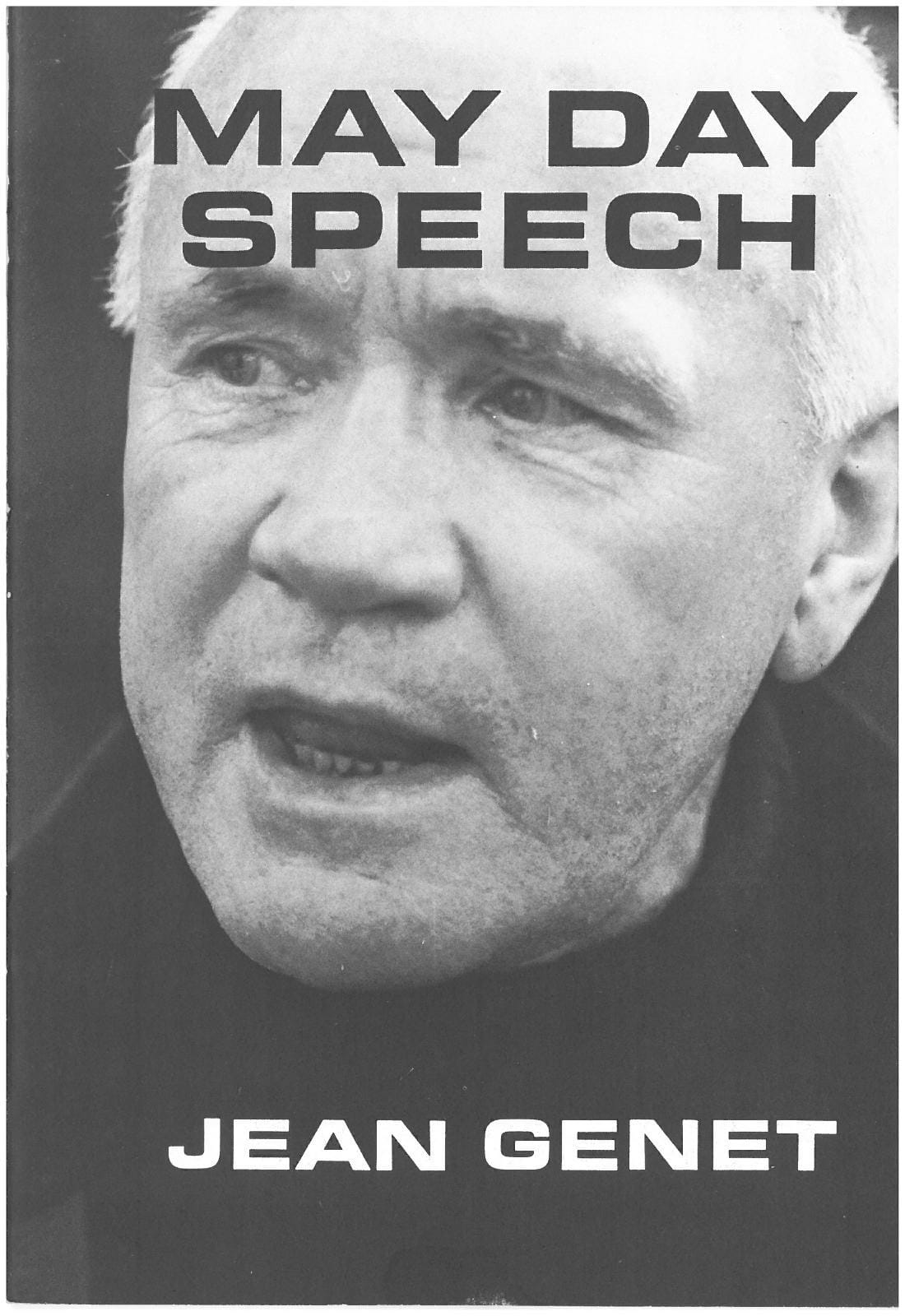 As relevant as those remarks on racism are to today’s situation, Genet’s extended “appendix” to the May Day Speech, first published in a special edition by City Lights Books, represents a wider confrontation with white neoliberals and their snug institutions.