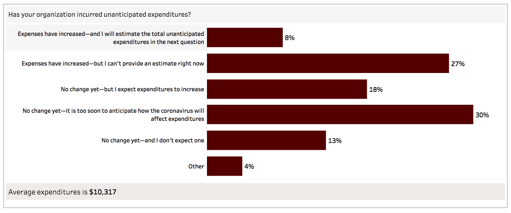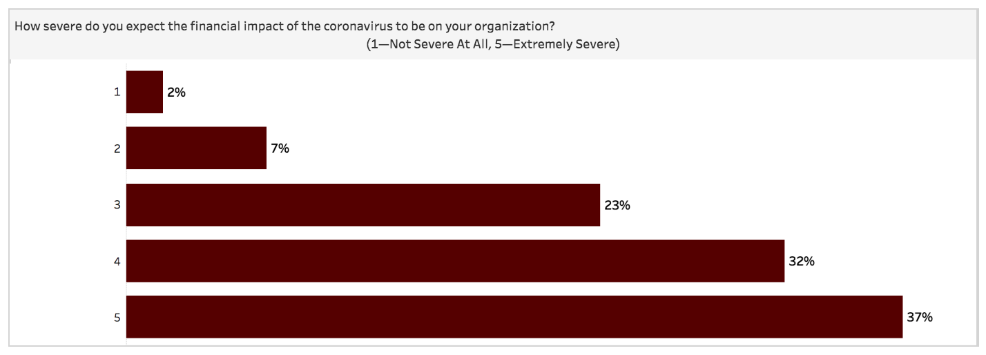 Organizations were asked to estimate responses going back to when the first coronavirus case was reported in the US, on January 20, 2020. The survey was opened to respondents on March 13.