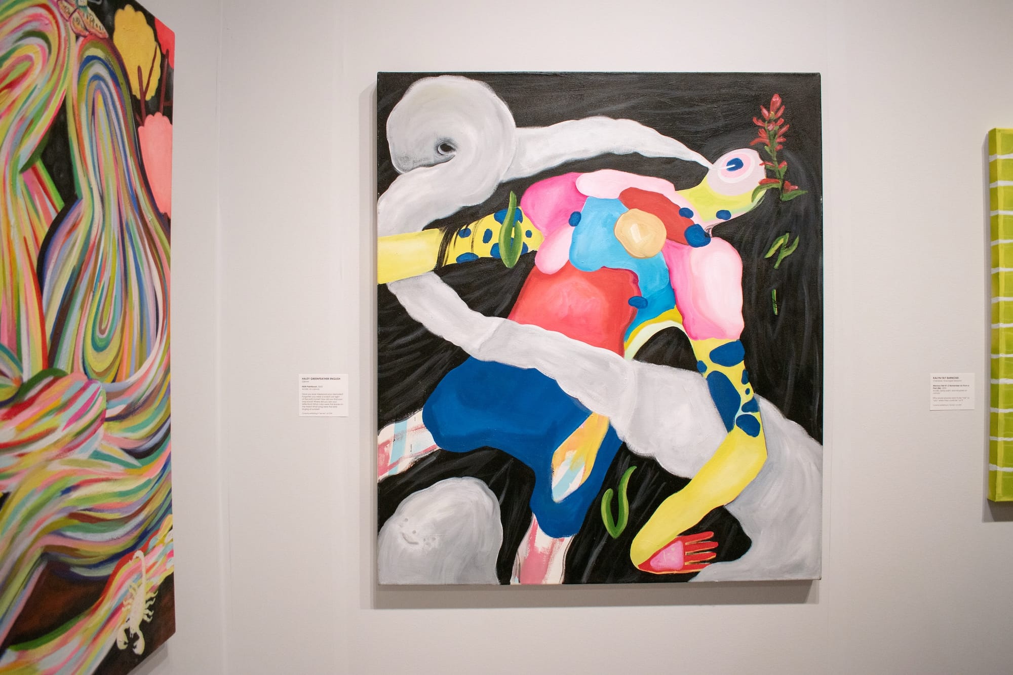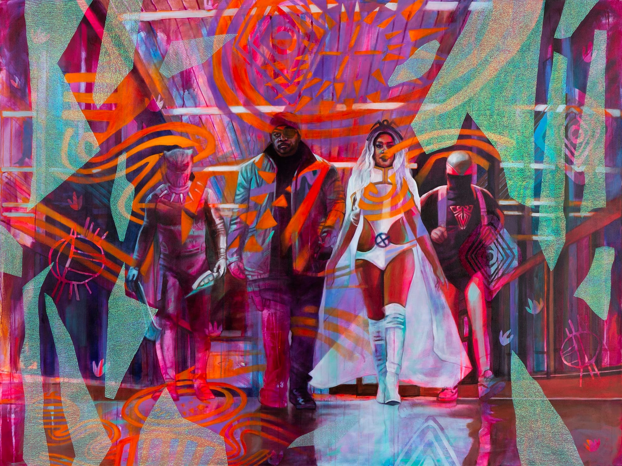 In a different take on figuration, painter Leslie Barlow of Bockley Gallery in Minneapolis draws in endless visitors with her imaginative depictions of Black cosplayers. Her love for her community is palpable; she glowed as she described cosplay as a practice that “opens up what is possible through identity, radical play, and transformation.”