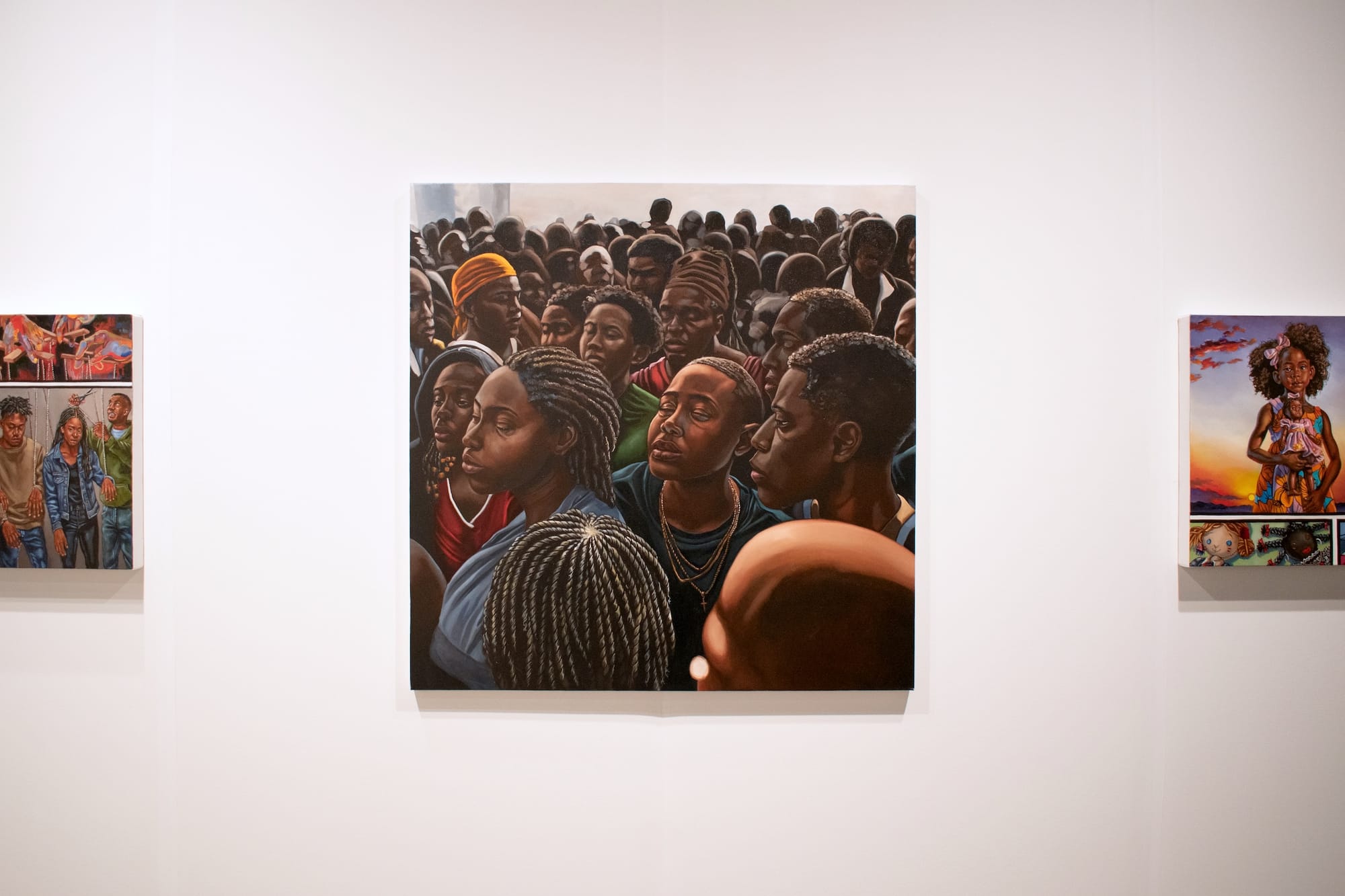 Coming from Brooklyn, Richard Beavers Gallery allowed artists to speak to sociopolitical challenges through a themed exhibition booth titled Breaking the Simulation. Beavers told me he hopes the works will “act as a catalyst to evoke conversation around these uncomfortable issues.” Works by oil painter Terron Cooper Sorrells do exactly that, prompting a reconsideration of systems shaping Black lived experiences through arresting figuration and layered imagery.