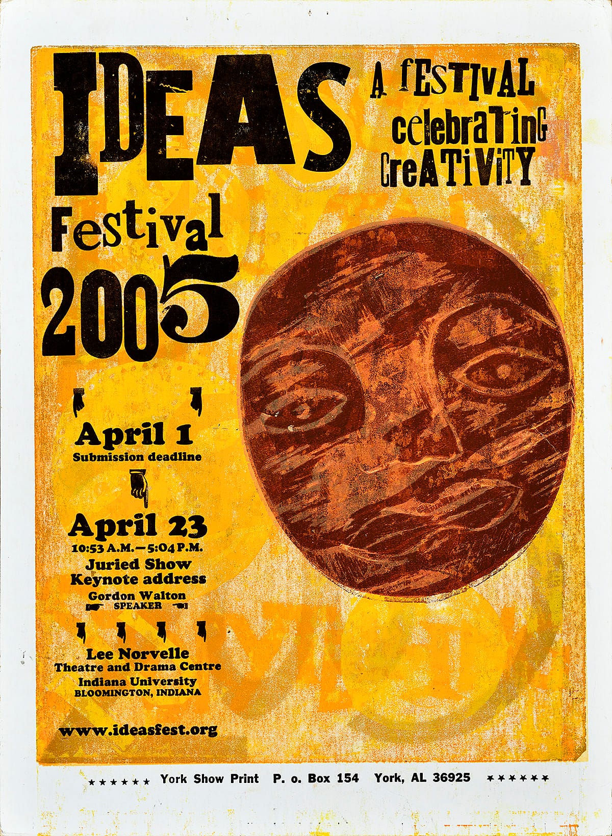 - This submission-based creativity festival took place at Indiana University in Bloomington, Indiana, and featured a keynote speech by video game developer Gordon Walton (best known for his involvement in The Sims).