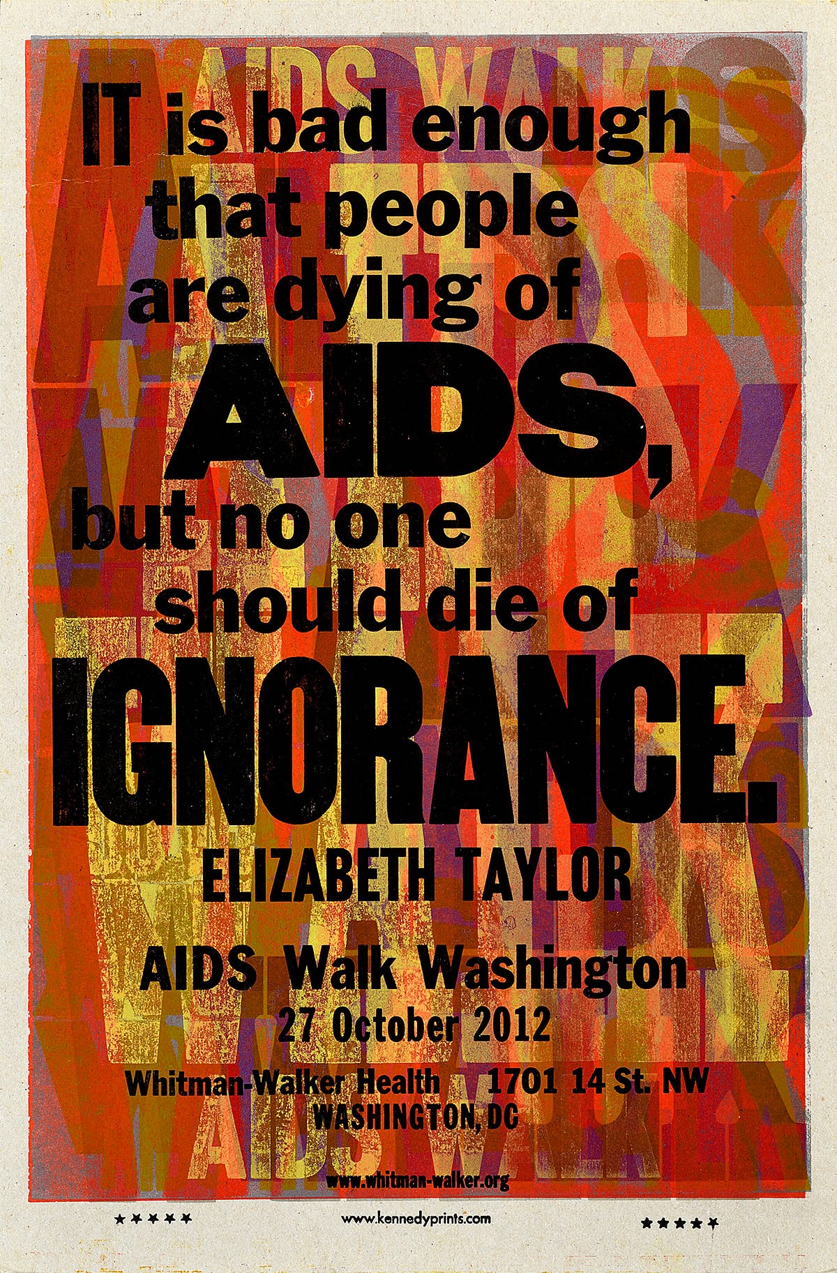 - In this poster, Amos uses one of Taylor’s most famous quotes from that era to announce the 26th annual AIDS Walk in Washington, D.C., organized by Whitman-Walker Health.