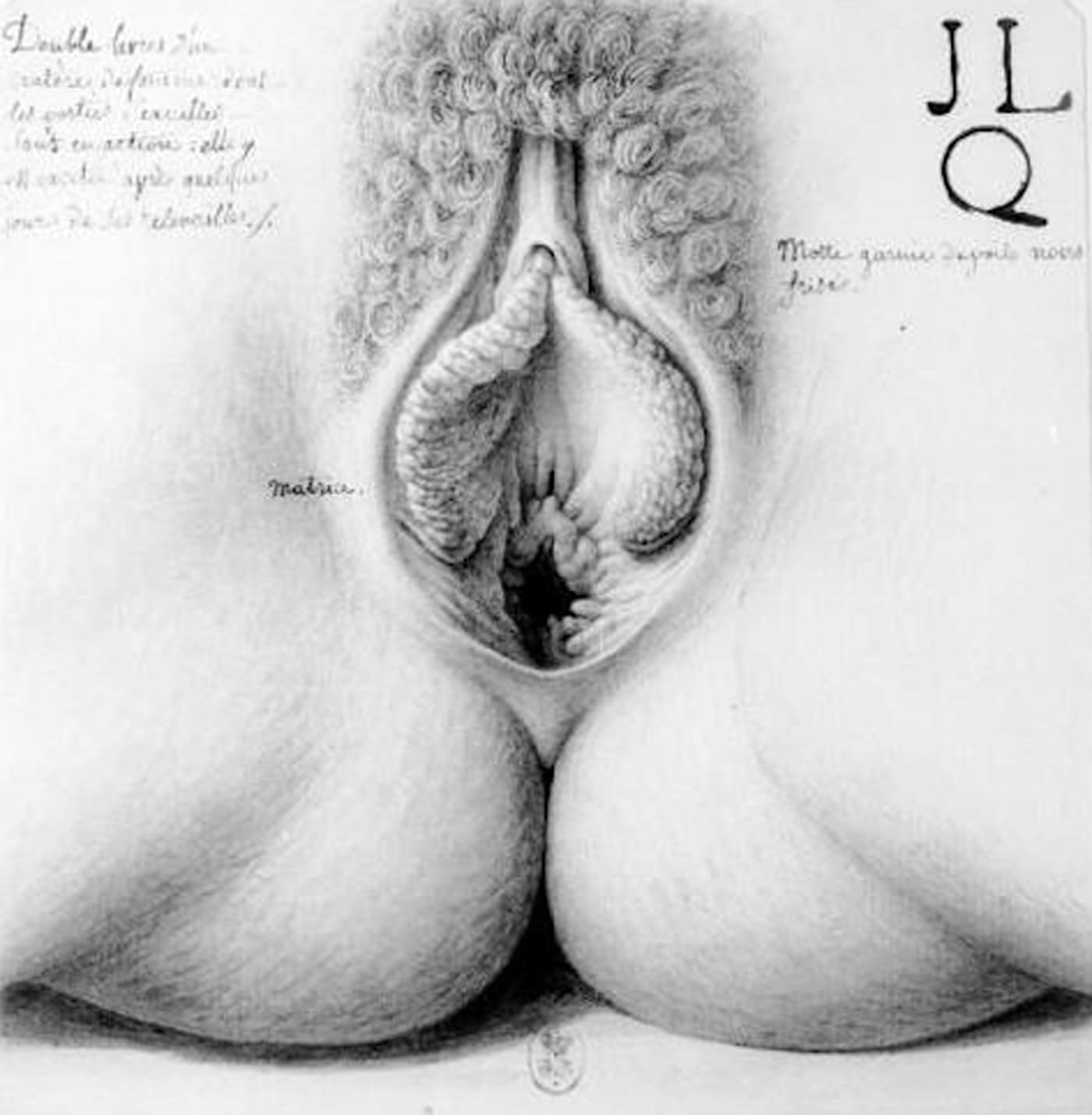 I suppose posthumous recognition and appreciation must be better than no appreciation at all. Such is the curious case with Jean-Jacques Lequeu (1757–1826), the unknown bagatelle utopian architect and prolific proto-postmodern draftsman of grandeur. Once relegated to academic footnotes as a bemusing curio, Lequeu is finally being fully recognized for his cheeky and dazzling drawings that experimented with both perplexing structure and taunting narrative. Particularly impressive are his gobsmackingly libertine, hyper-intense drawings of human genitalia that he rendered as if a prurient Neoclassical architectural folly. The provocative and arresting anatomical rendering that is “Black Woman (After Nature)” (ca. 1795) seems aporetic: both competently rendered and slightly impossible, simultaneously. The finely inked “Of Age to Conceive” (1795–1779) renders, in a hyper-clear precise style typical of architectural drawings, a solidly built oven-like vagina lacunae emitting a strange cold-heat that could bake bread. The insufferable pretentiousness of the symmetrically spiraling pubic hair reads like ideal smoke, or, with a bit of wit, as the wig of the king.