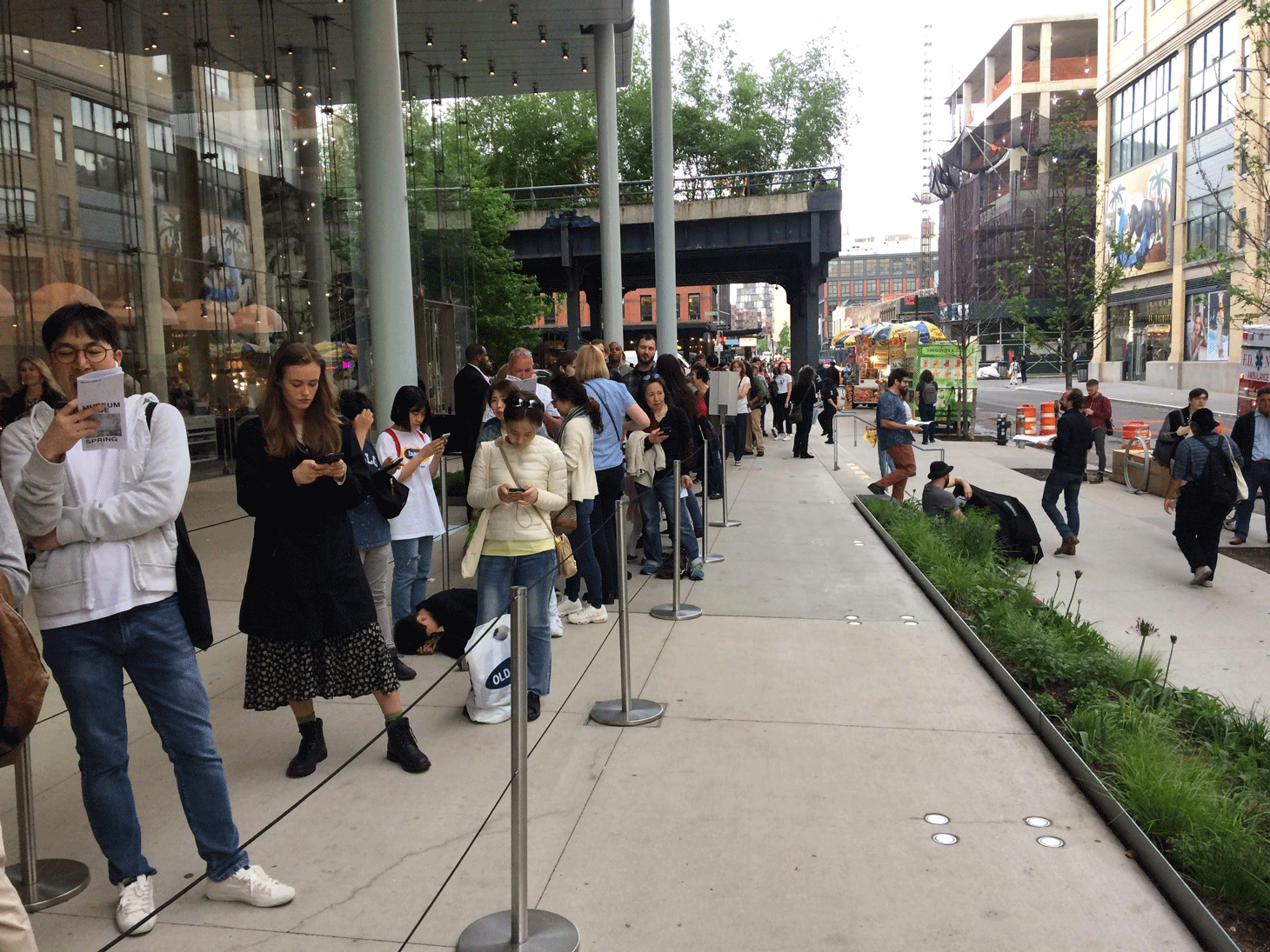 Later chapters in the guide expound the displacement of queer communities from the Meatpacking District to build the museum’s new building (which opened in 2015), a lack of diversity in the Whitney’s board, and “art washing” sponsorships. (D)IRT criticizes the museum’s partnership with the real estate company TF Cornerstone on Derek Fordjour’s public art installation on gun violence. Fordjour’s mural “Half Mast” (2019) was installed on the High Line close to the Whitney. TF Cornerstone, the guide says, is the lead developer planning to build luxury housing on the public-owned land of the Anable Basin site in Long Island City, where Amazon’s HQ2 was planned to be built.