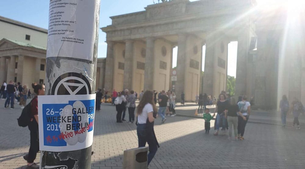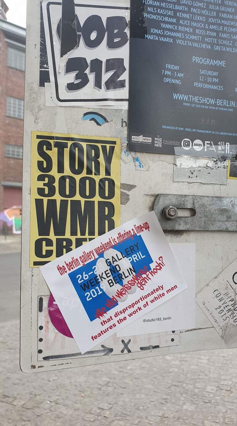 BERLIN — Earlier this week, stickers and posters started circulating in and around the city of Berlin that point to a disparaging fact: according to a group of arts activists, 75% of the artists being platformed at Berlin Gallery Weekend are white and male.