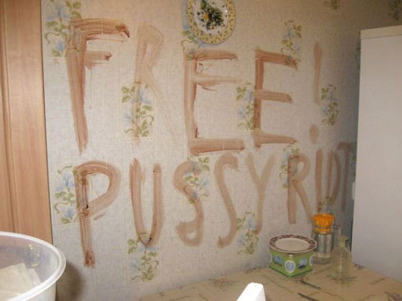 Most disturbingly, two women, one 76 years old, the other 38, were murdered in the city of Kazan last weekend, and the words “Free! Pussy Riot” were apparently found written in blood on a wall above the bodies. According to the Guardian, the police arrested a man who confessed to the crime and told police he was trying to mislead them by writing the slogan.