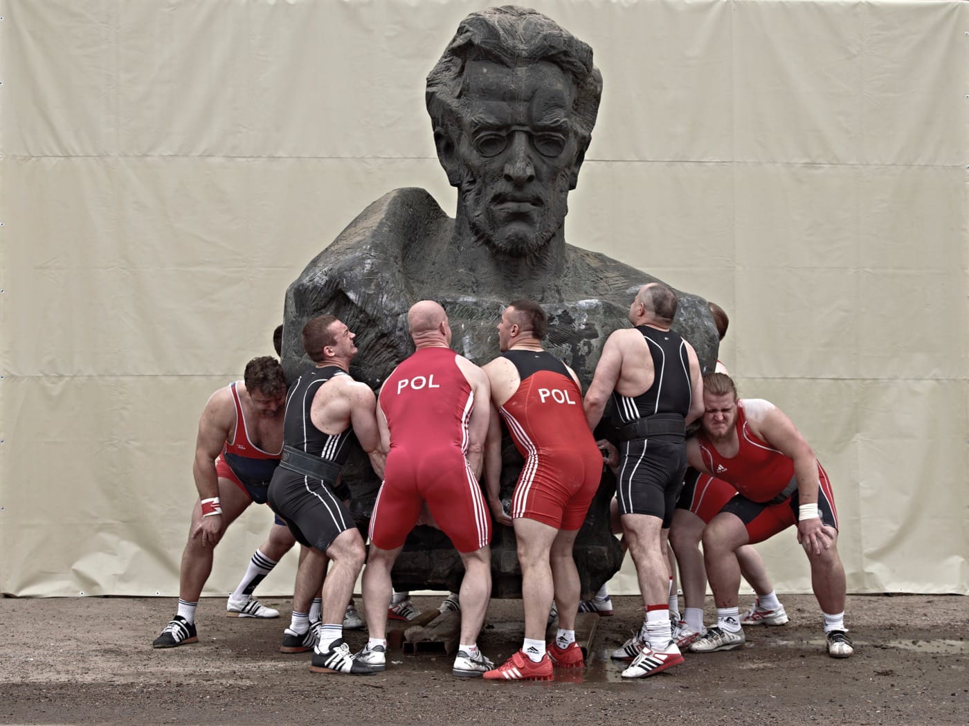 With a focus on art driven by crisis, the Yokohama Museum of Art, and the two well chosen historical venues — the Red Brick Warehouse No. 1, and the Yokohama Port Opening Memorial Hall — displays most of the works in which artists mine current and historical events to level indictments as well as reappraise the precariousness of contemporary conditions. Housed in the Red Brick Warehouse No. 1, Berlin-based Christian Jankowski’s performative video and photographs in “Heavy Weight History,” (2013), showcases professional wrestlers in Warsaw who were invited to remove behemoth, bronze statues of Communist era historical figures such as Ludwik Warynski. Accompanied by the humorous banter of a reality TV host who questions the participants about the relevance of the statues, the wrestlers’ immense physical struggle also seems weighed down by the burden of history. This piece echoes current discussions taking place in the US about the importance of public sculptures, and reflects both Jankowski’s and the Triennale’s intention to initiate socially collaborative endeavors to reexamine history.