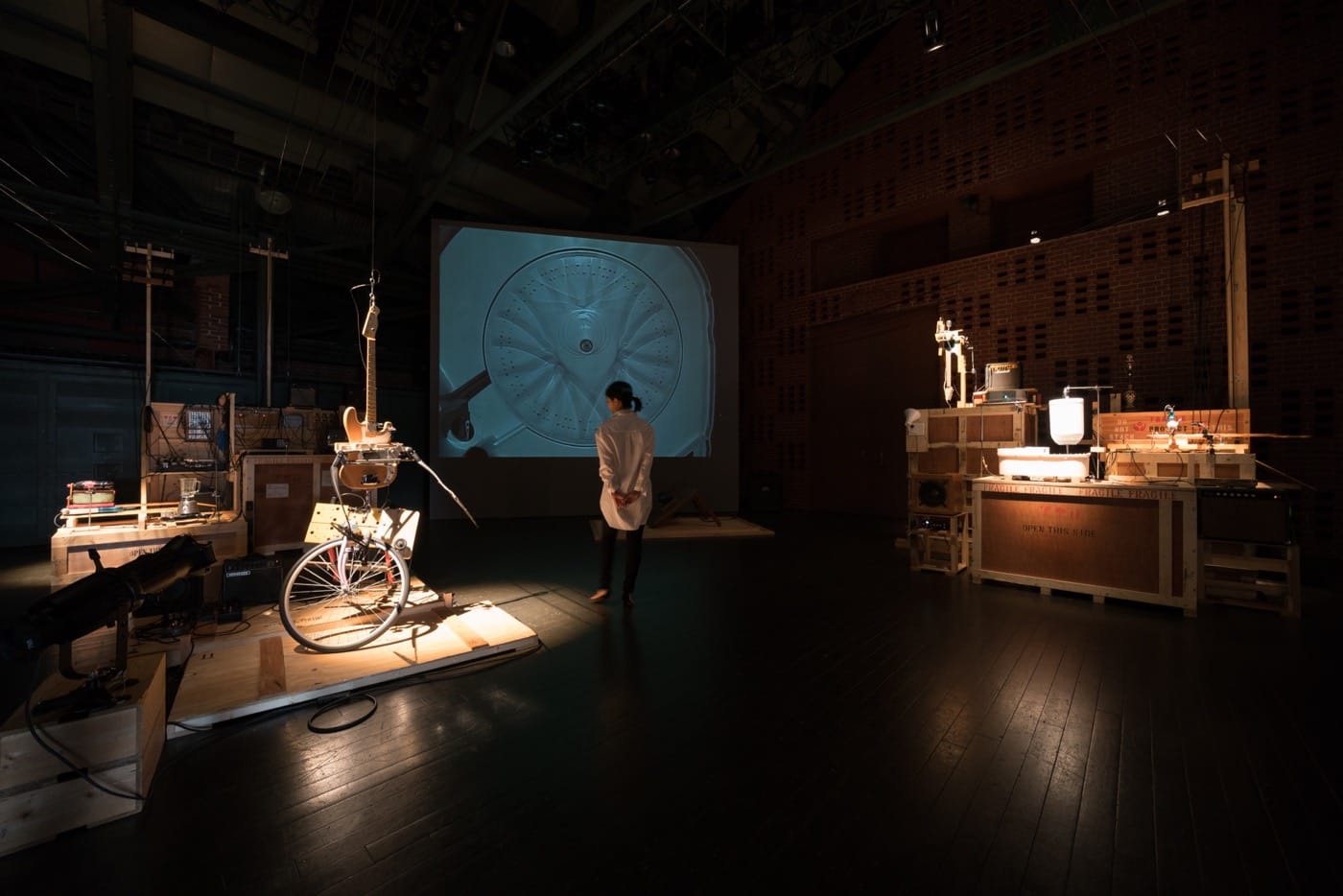 The emergence of repressed narratives converted the warehouse from a repository of stored information to a space for nurturing catharsis. Seo Natsumi’s collected typed responses from survivors of the Hiroshima and Nagasaki bombings displayed within vitrines placed in a dimly lit corridor reveal how victims never discussed the outcome of the war or what they had experienced. Adjacent to Jankowski’s work, Muneteru Ujino recreates his brilliant musical sculpture, “Plywood Shinichi,” (2017), first made in 2008 for an exhibition in Berlin. Made up of household goods and hybrid, self-made musical instruments laid out on crates, Ujino appears to explore an equally sensitive subject. In an accompanying video, the artist discusses the influence of American machinery manufactured in Japan on his work as he drives around US military bases on the outskirts of Tokyo. One suspects that the cacophonic sounds emitted from the installation that are as compelling as they are dissonant, reflect the artist’s complex emotions vis-à-vis the role of America in Japan.