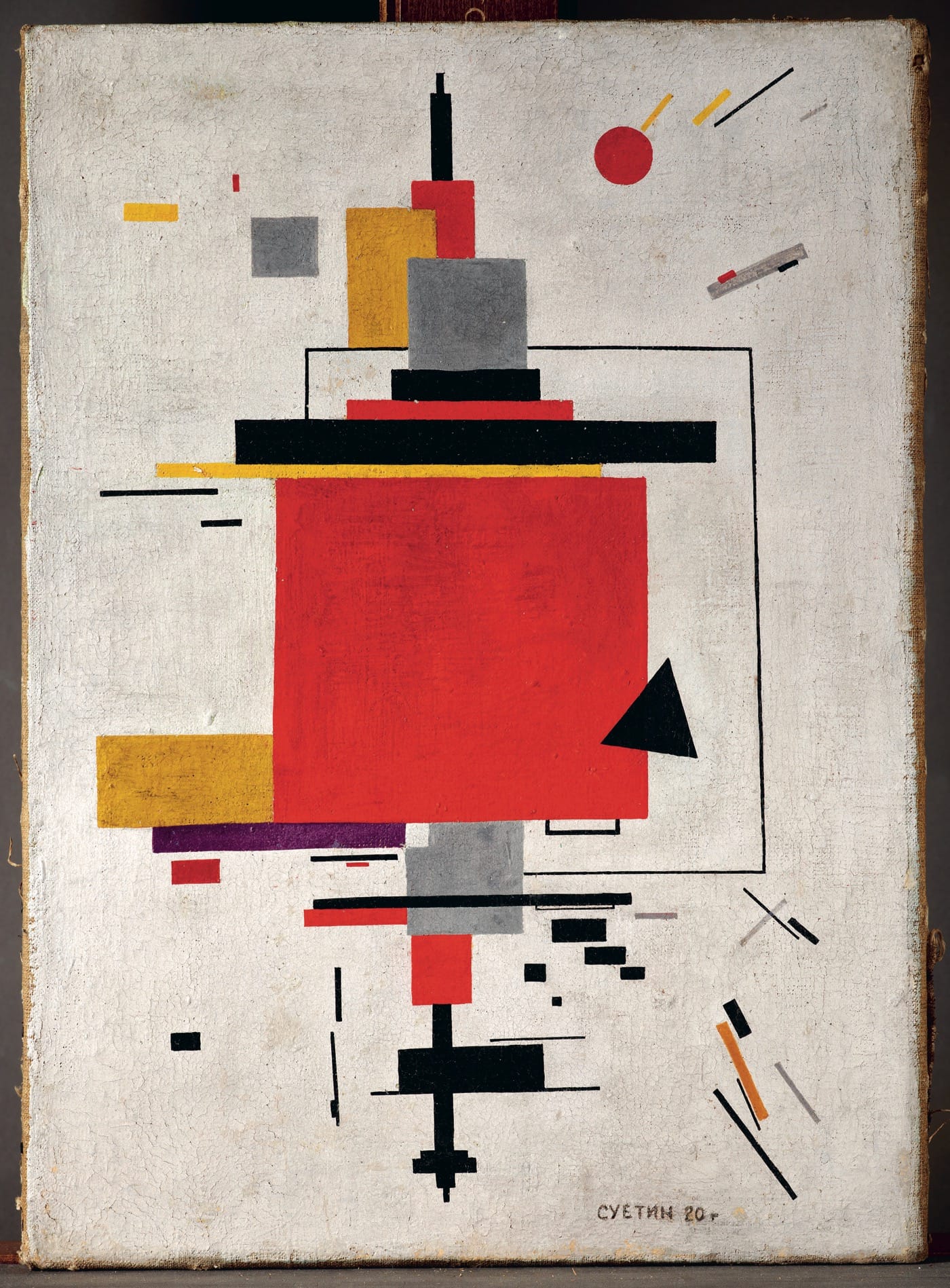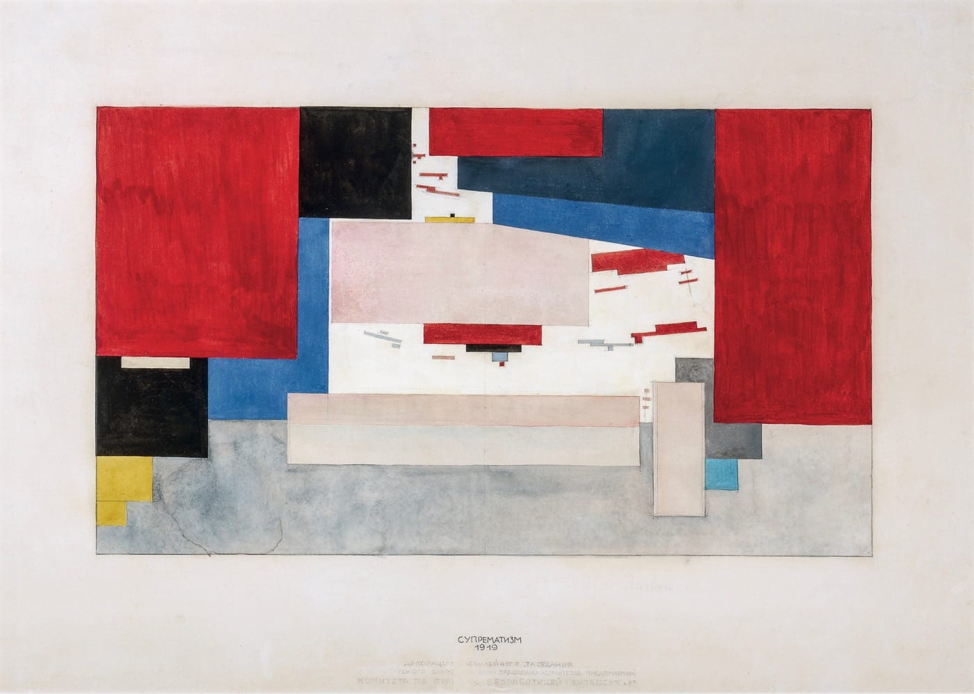 In a context of frenetic excitement around Malevich and Ounovis, Chagall found himself increasingly isolated, teaching his art before a classroom of an ever dwindling number of students. In 1920, dejected, Chagall and Bella left Vitebsk to return to Petrograd. Chagall blamed Malevich for his ostracism, a grudge that the painter would hold onto for the rest of his life. Lissitzky departed shortly after, trading in his enthusiasm for Suprematism for a new obsession with the Constructivist activities of Vladimir Tatlin at the Vkhutemas (“Higher Art and Technical Studios”) in Moscow. Meanwhile Ounovis came to dominate the Vitebsk school until 1922, when its members, who dreamed of turning their collective into a political party, left for the Soviet Union’s large cities.