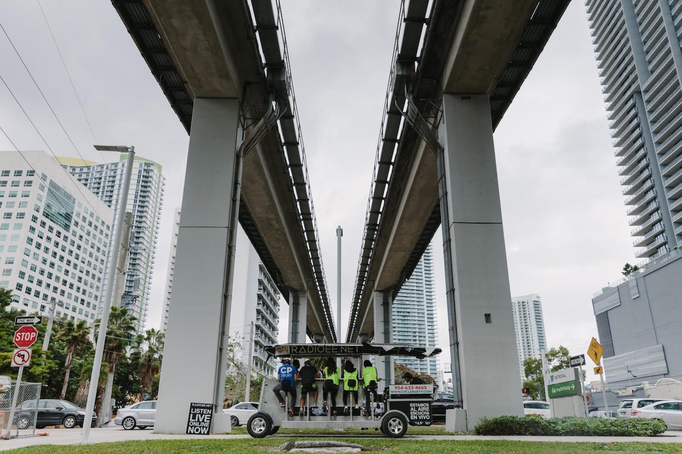 Helping to pedal the bike over the weekend myself, the quieter regions of the MPath felt idyllic: children were tucked into strollers, dogs ran the grounds, and I spotted the infamous nearly-naked cyclist, a Conch Republic flag tethered to his bicycle. Our bike was a gargantuan sight, and occasionally curious passerby would ask questions. But it was immediately obvious that clearer space for cyclists and foot traffic is critical — huge intersections that allow for right turns on red lights made movement dangerous at best, and sometimes impossible. Victor Dover, a founding principal of town planning firm Dover, Kohl & Partners, discussed the aforementioned cyclist, Munroe, adding, “Miami eventually became thought of as a car space in which transit was an afterthought. When the Metrorail started, it was called the Metro-Fail … But in one generation, the Metrorail is in many ways more important than the car space. We just have to build the correct environment to reflect that idea.” Architect and cycling advocate Mari Chael spoke of the importance of capitalizing on the resources available, including the Ludlam Trail, a former Florida East Coast railway right-of-way that will intersect with the Underline.