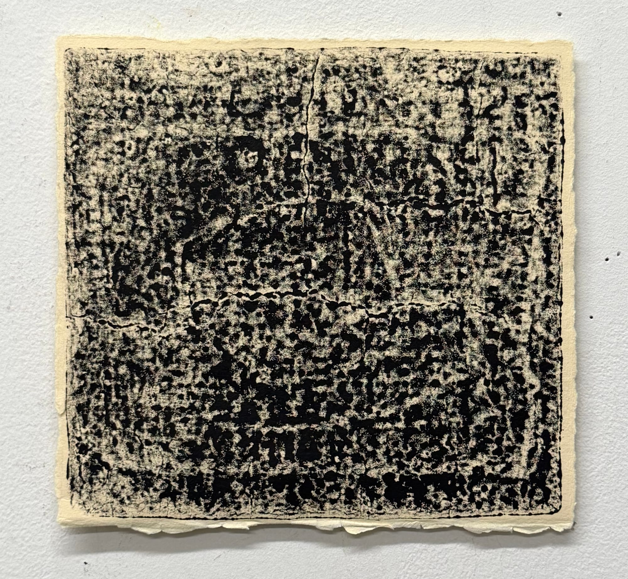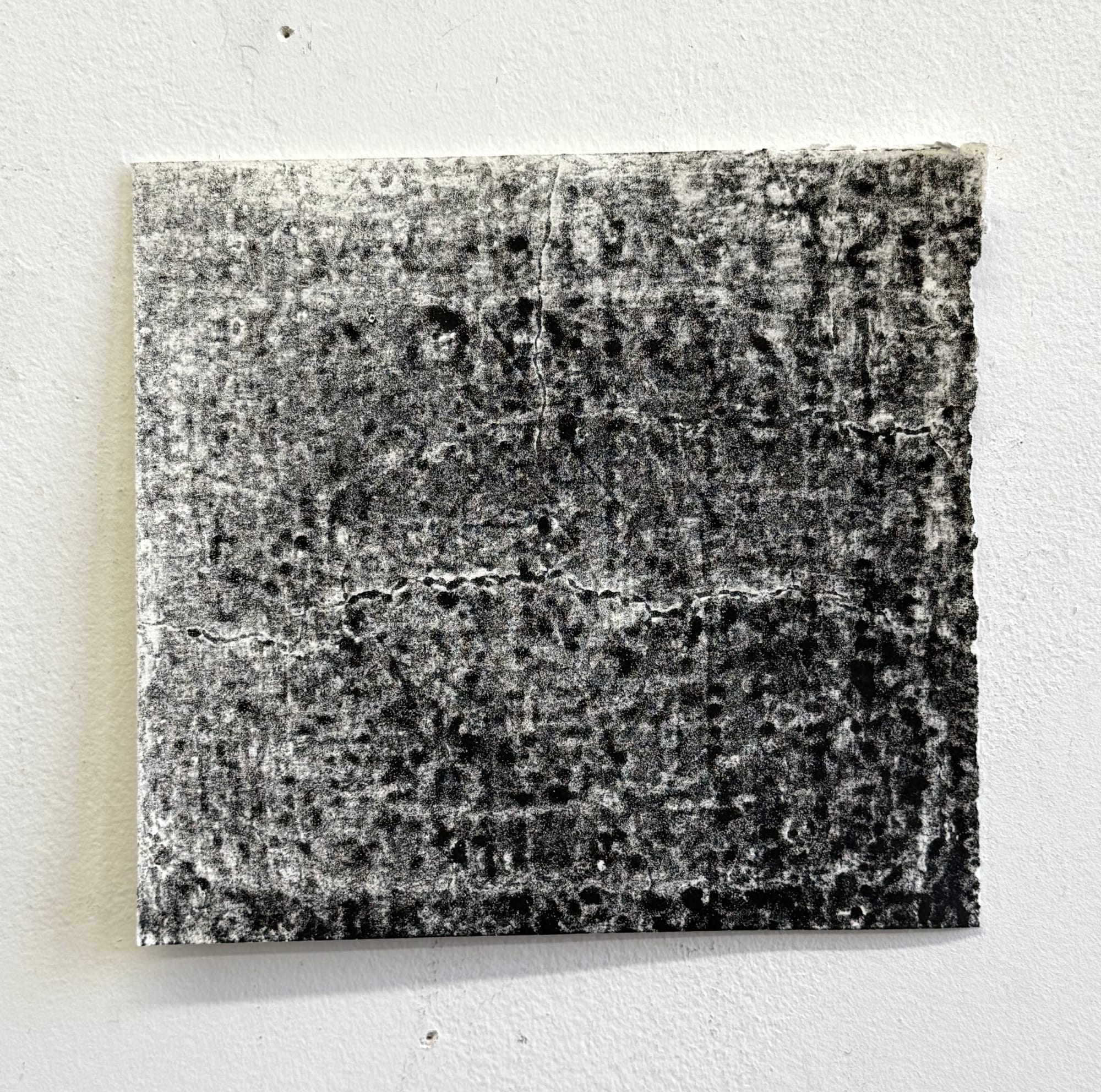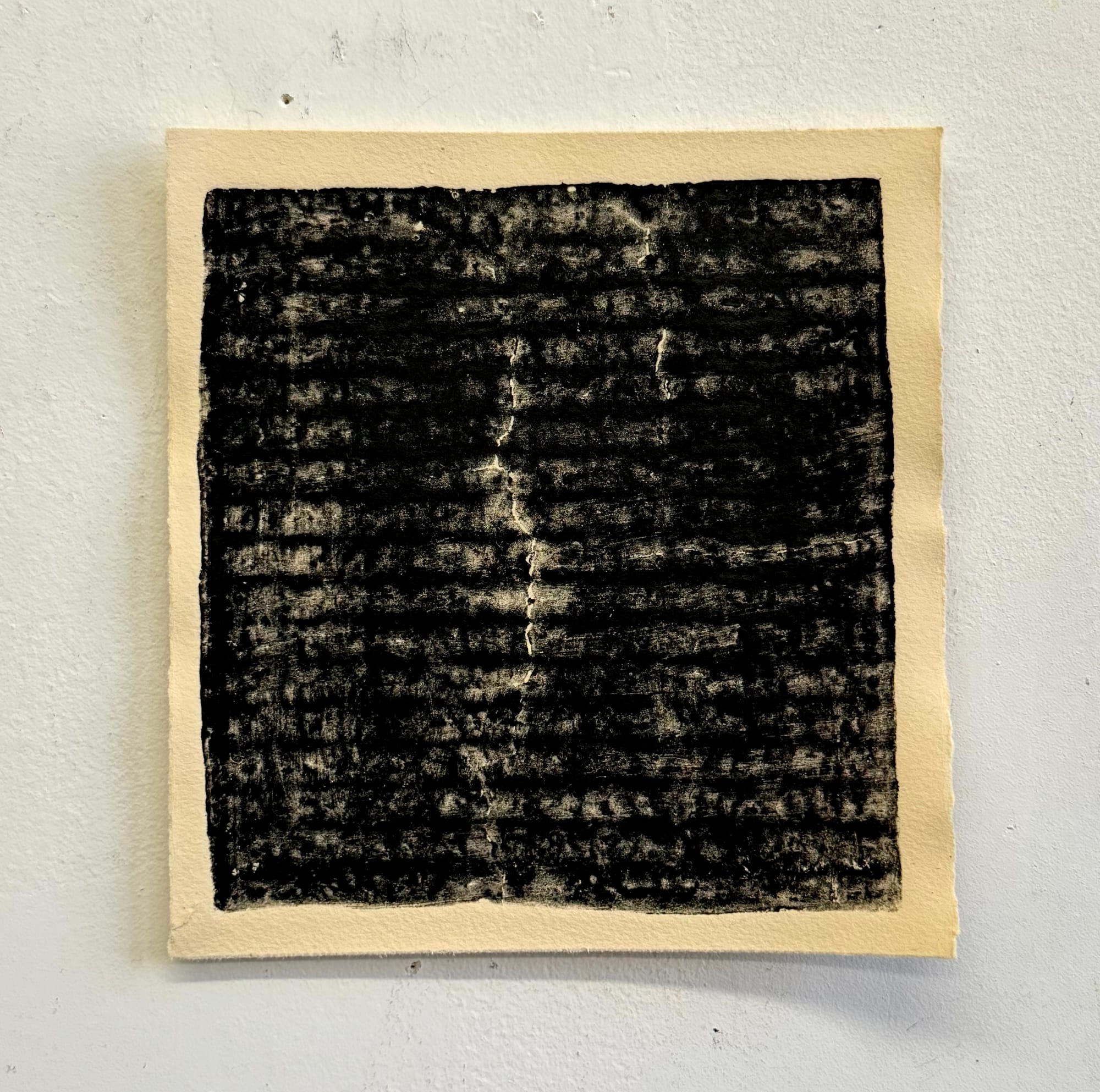 A decade later, the now New York and New Jersey-based artist has incorporated the unleavened bread into her practice of grid-based painting. For an ongoing series, Matzot, which she began in December, Miller runs sheets of matzah through a printing press to produce dark collographs. These black-and-white impressions showcase the range of textures found on the cracker-like sheets, including their natural and intentional cracks.
